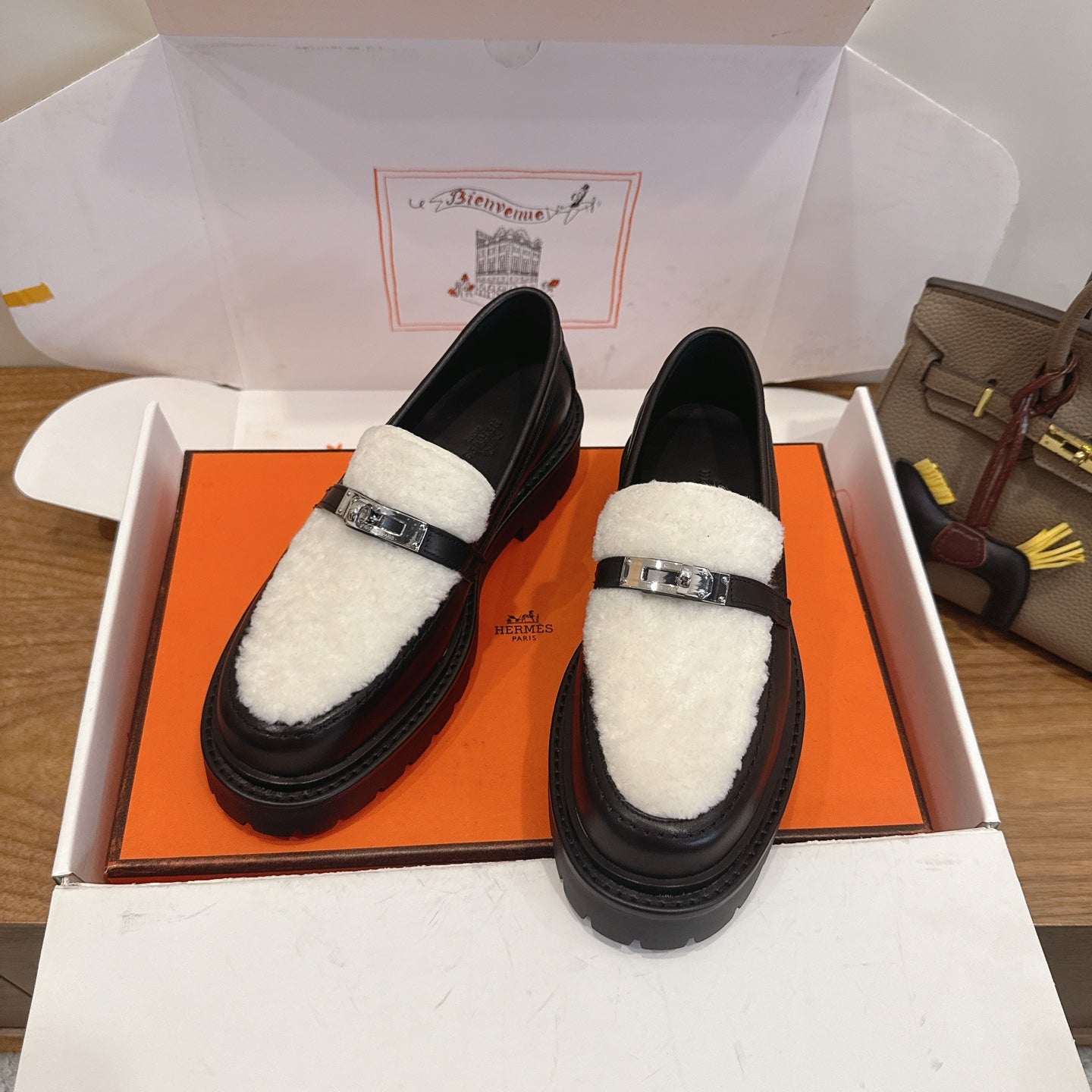 HM 26ss Loafers Black White Wool Calfskin 638439