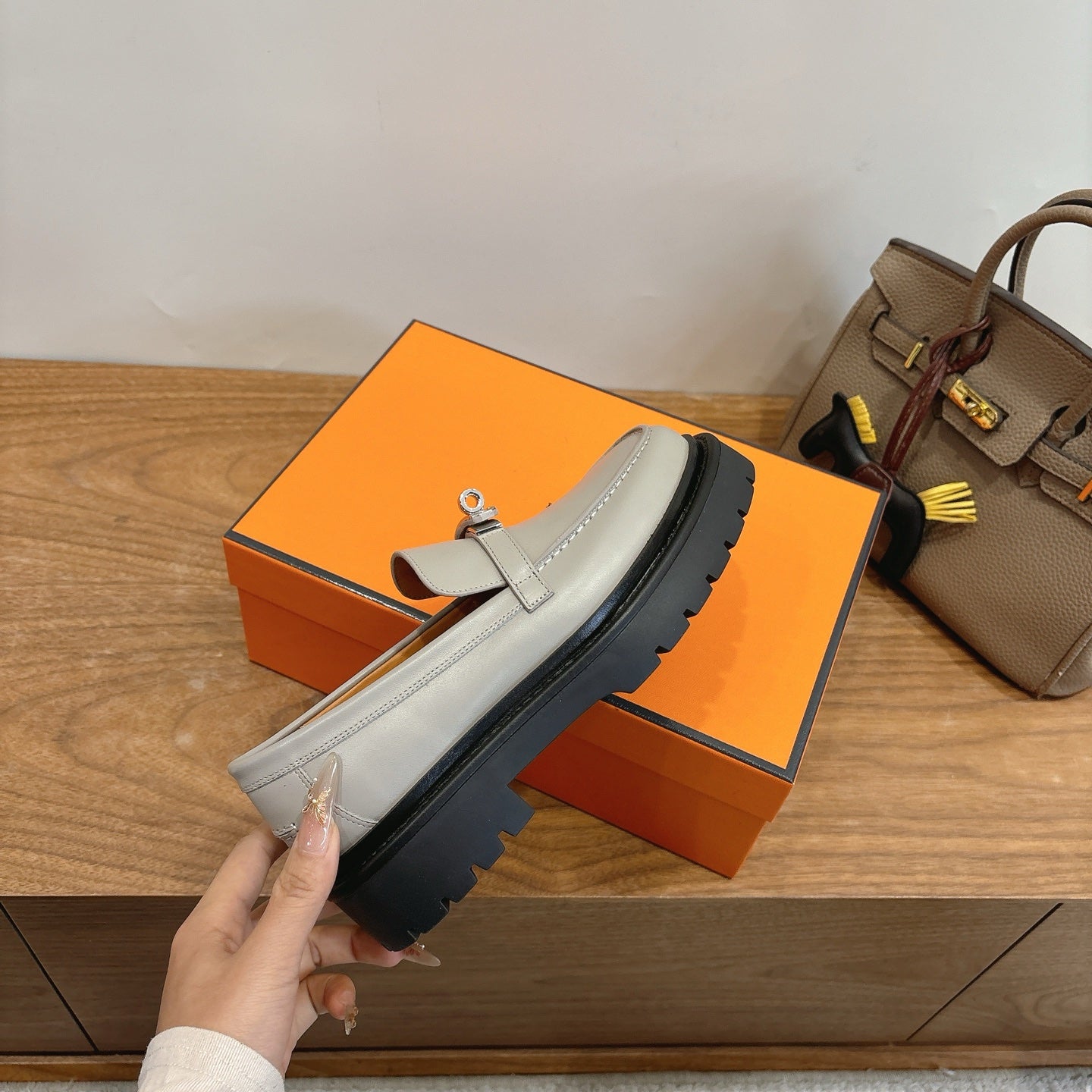 HM 26ss Loafers Gray Calfskin Sliver Buckle 638430