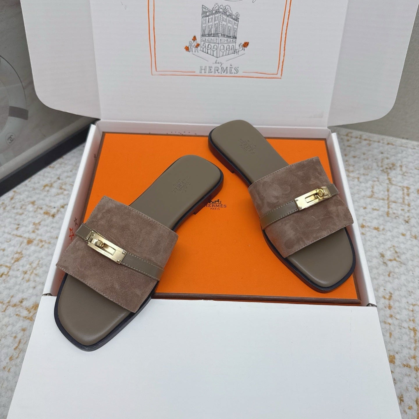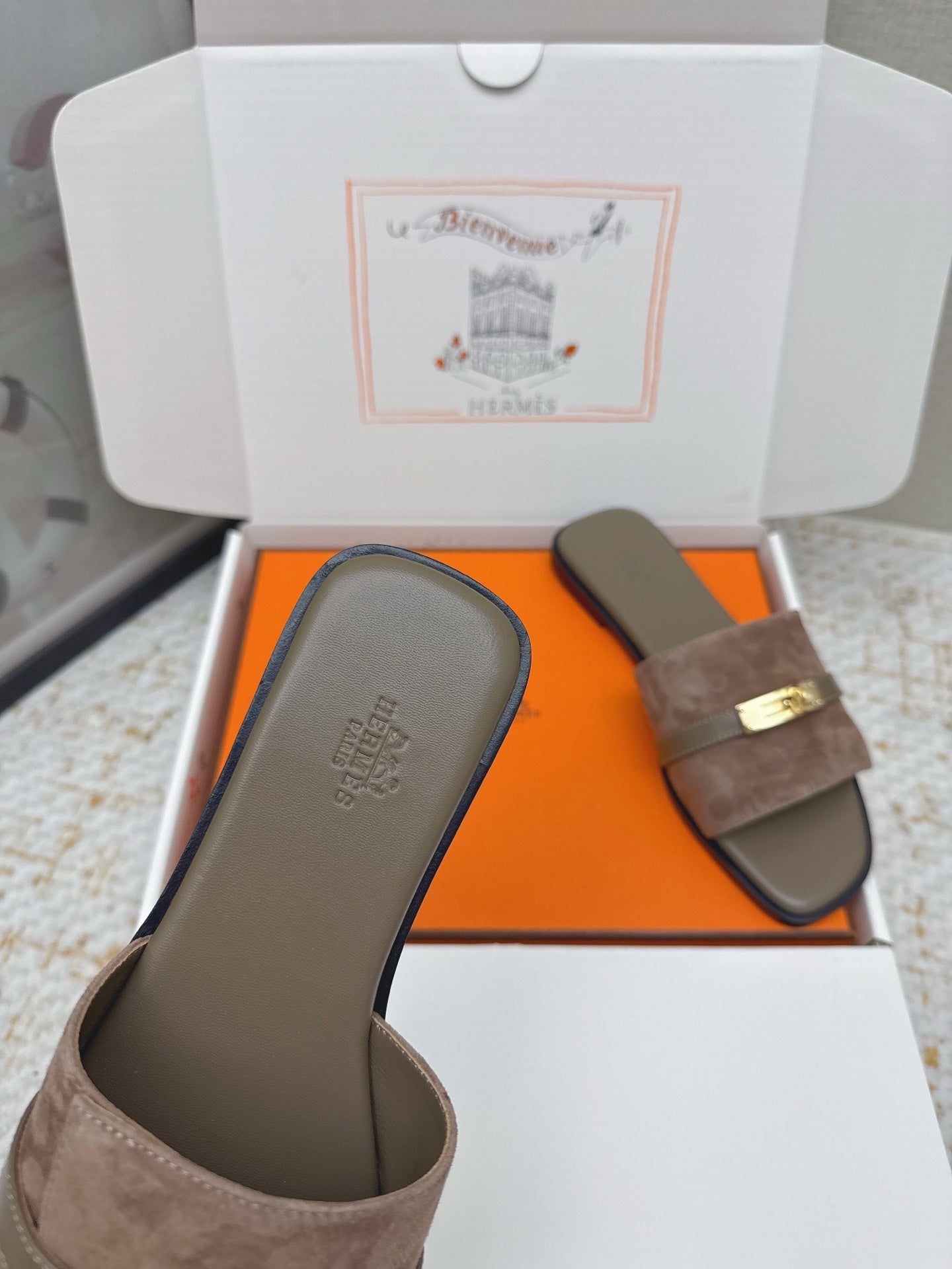 HM 26ss Oasis Sandals Brown Suede Cowhide 625146