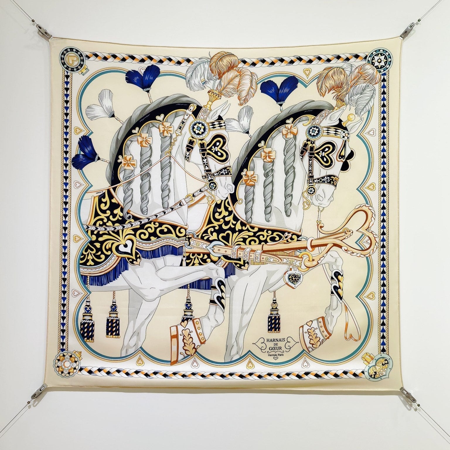 HM 26ss Sweet Saddle Scarf 90 Beige Navy Blue Colorful Twill Silk 132424