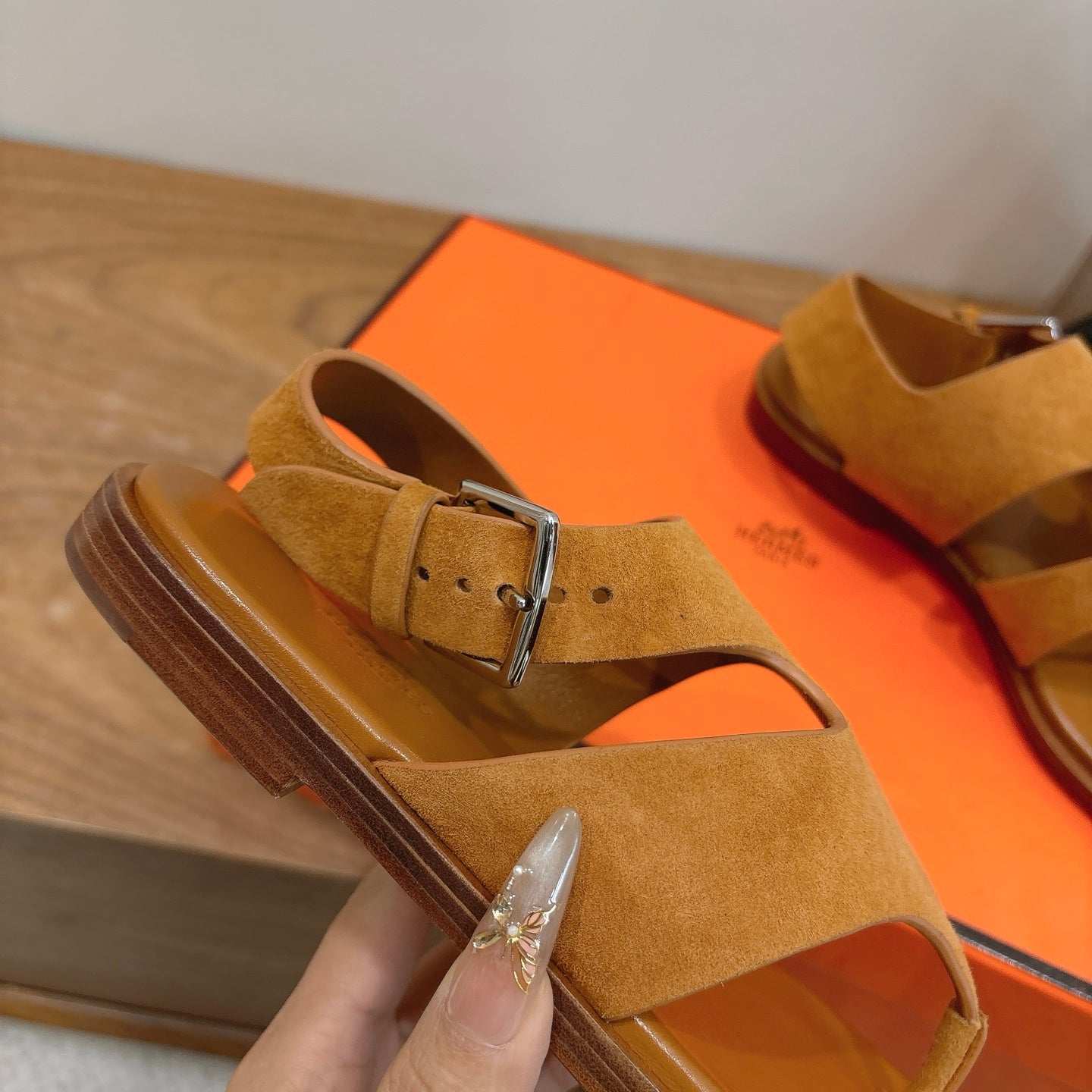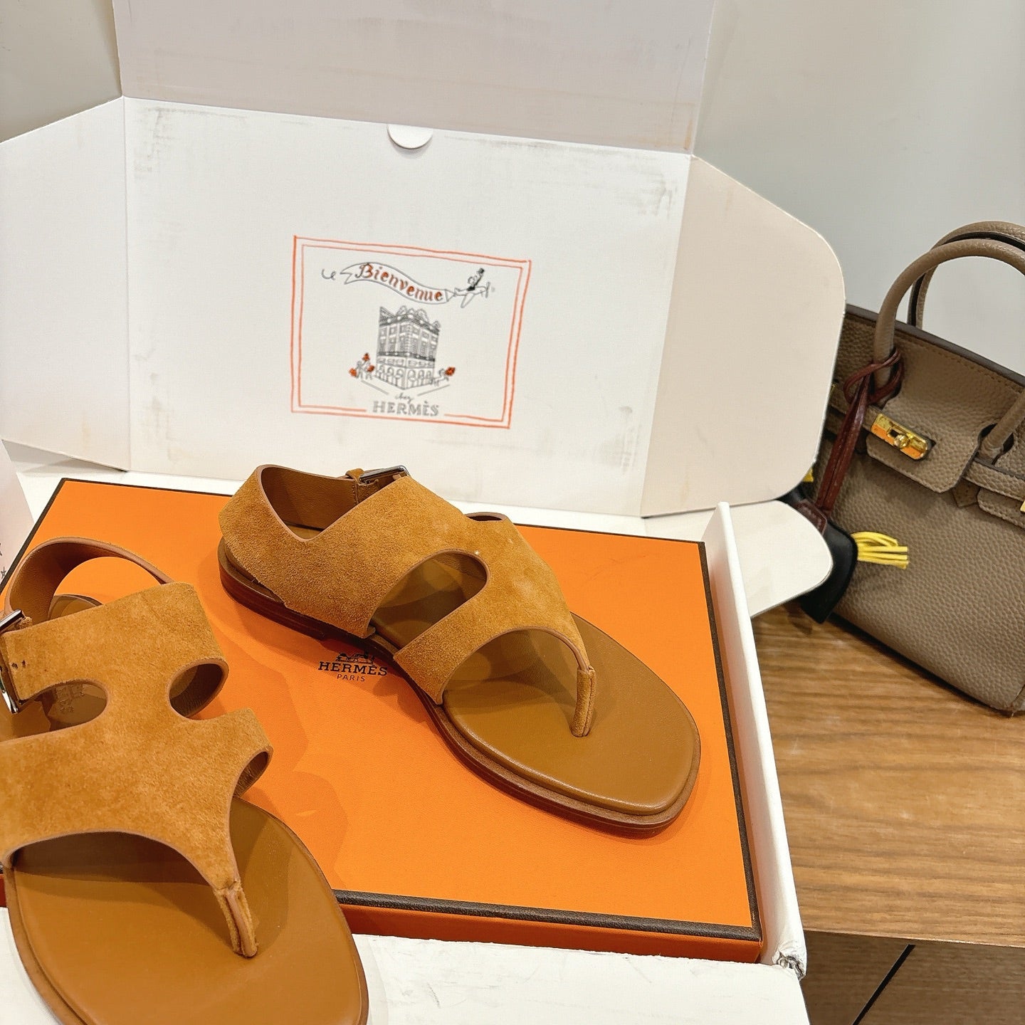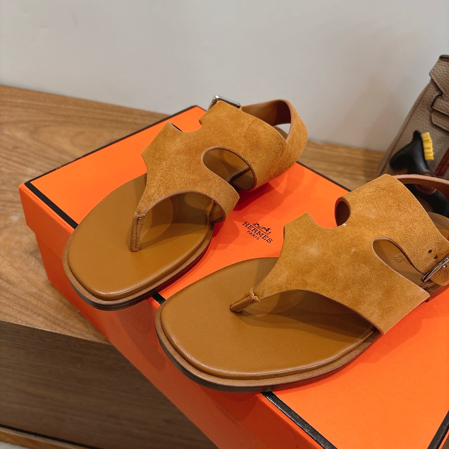 HM 26ss Thong Sandal Brown Suede Calfskin 638407
