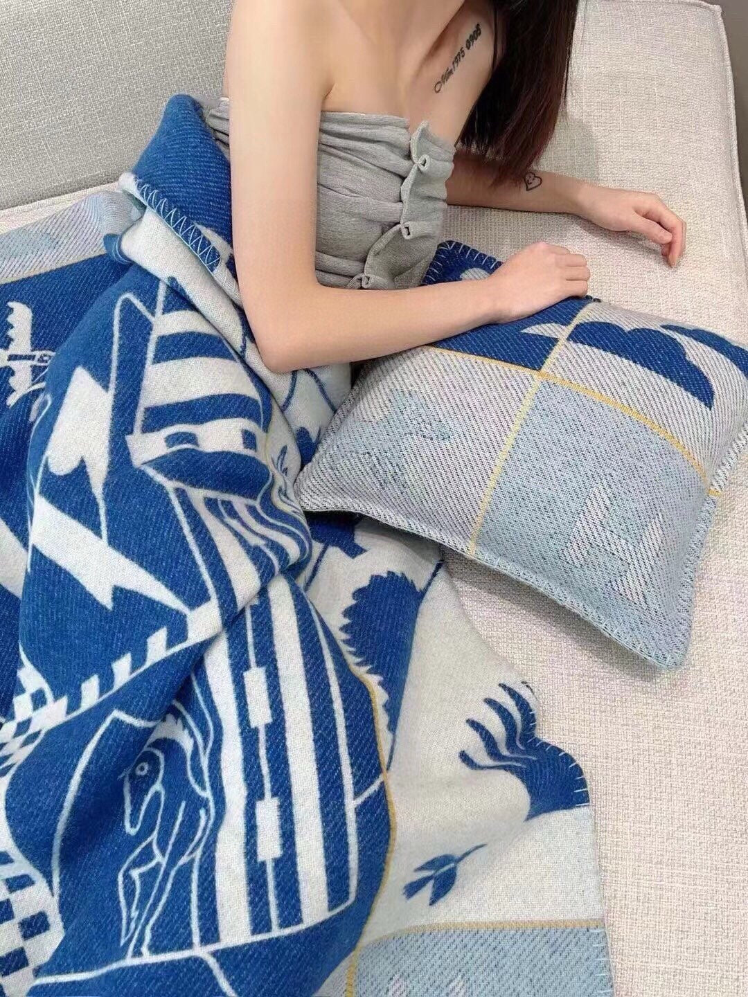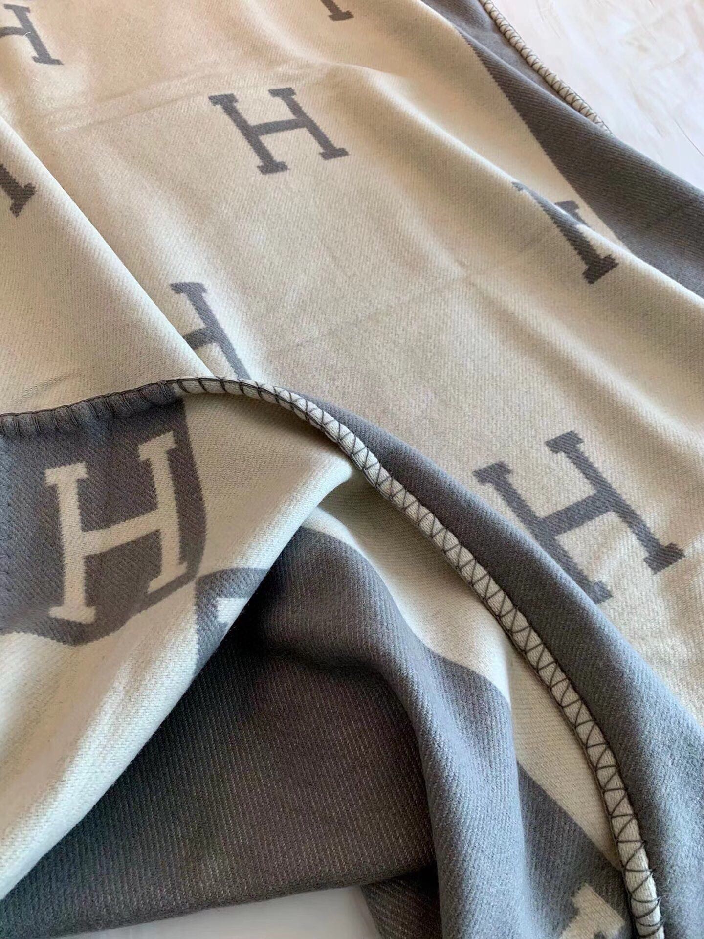 HM Avalon Throw Blanket Blue Grey Wool Cashmere