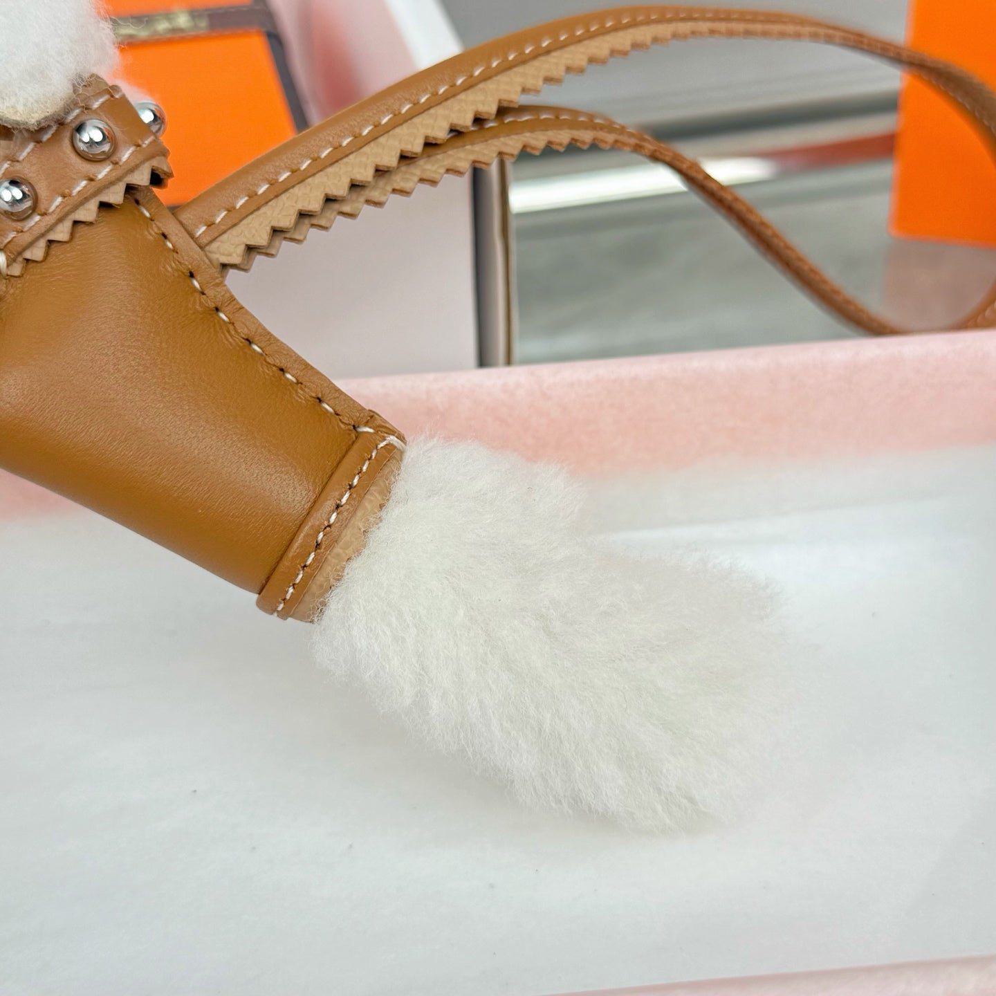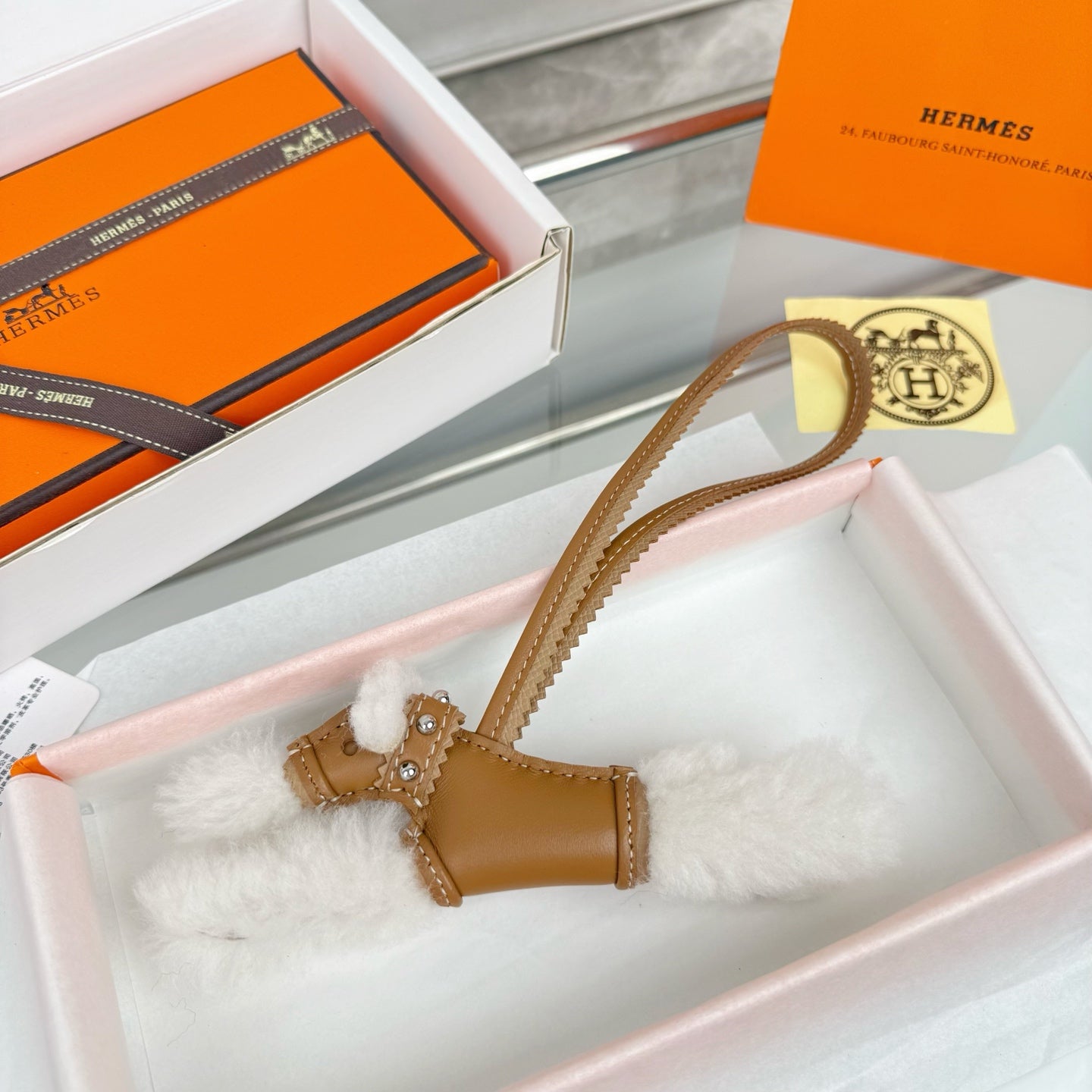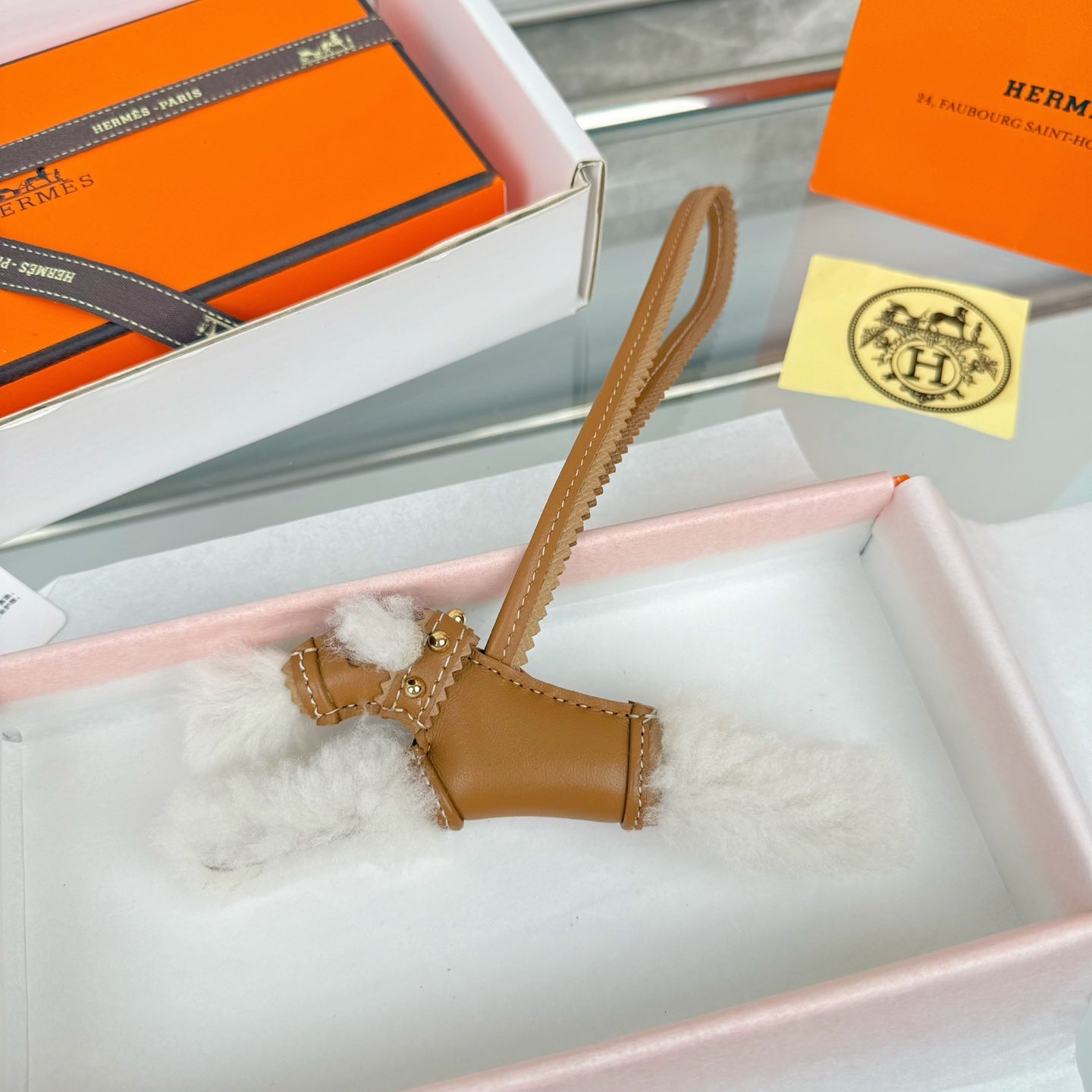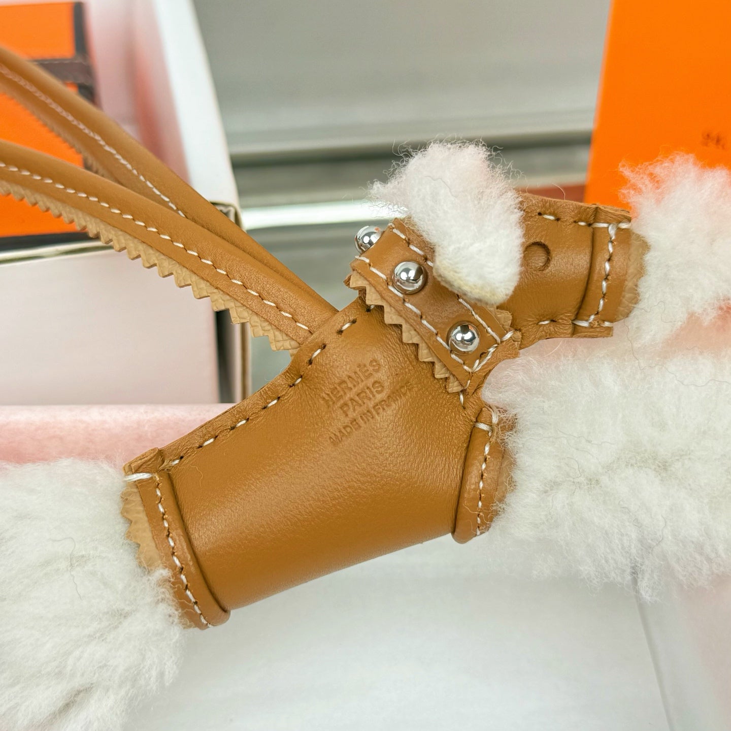 HM Budy Puppy Pendant Charm White Brown Wool Cowhide