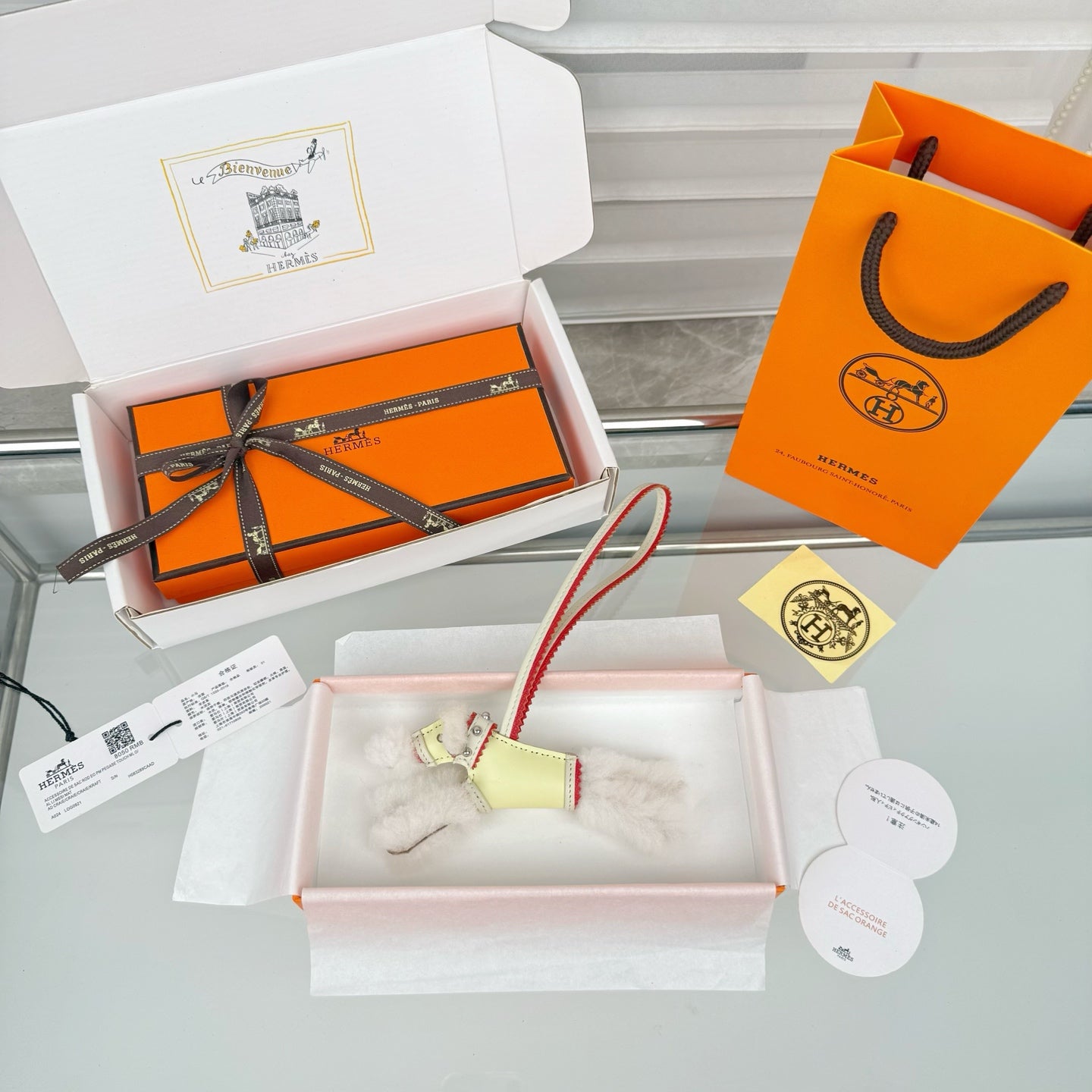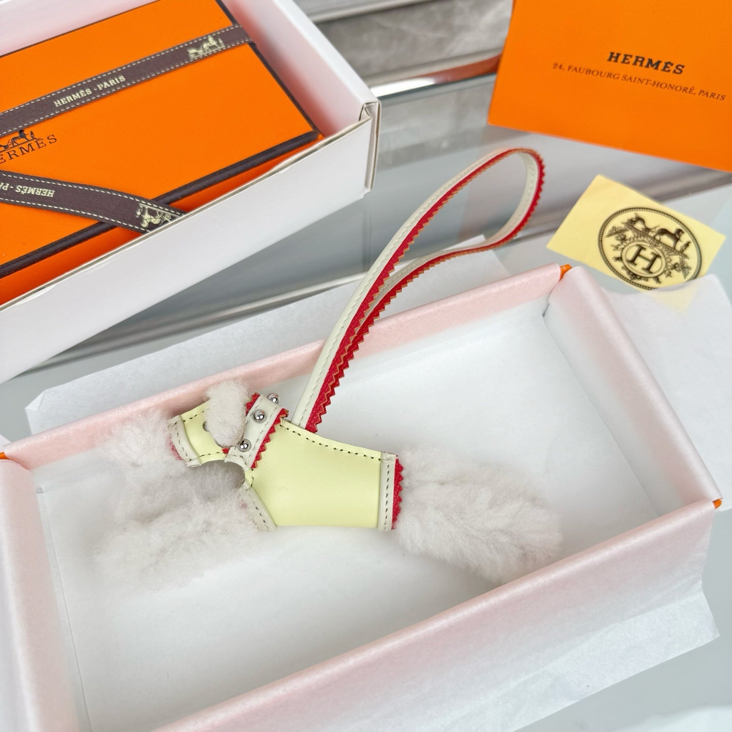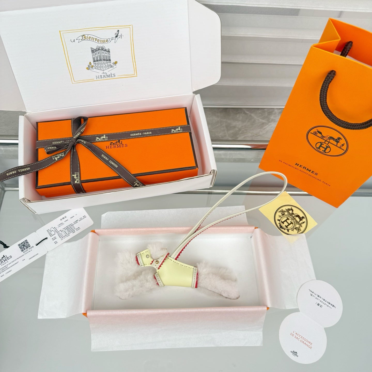 HM Budy Puppy Pendant Charm White Light Yellow Wool Cowhide