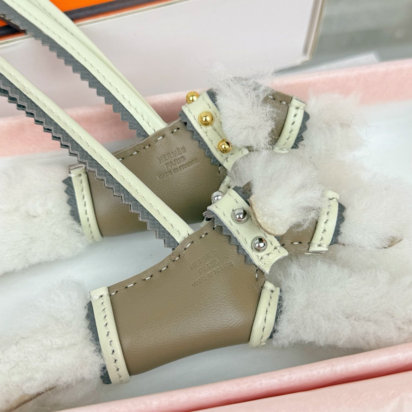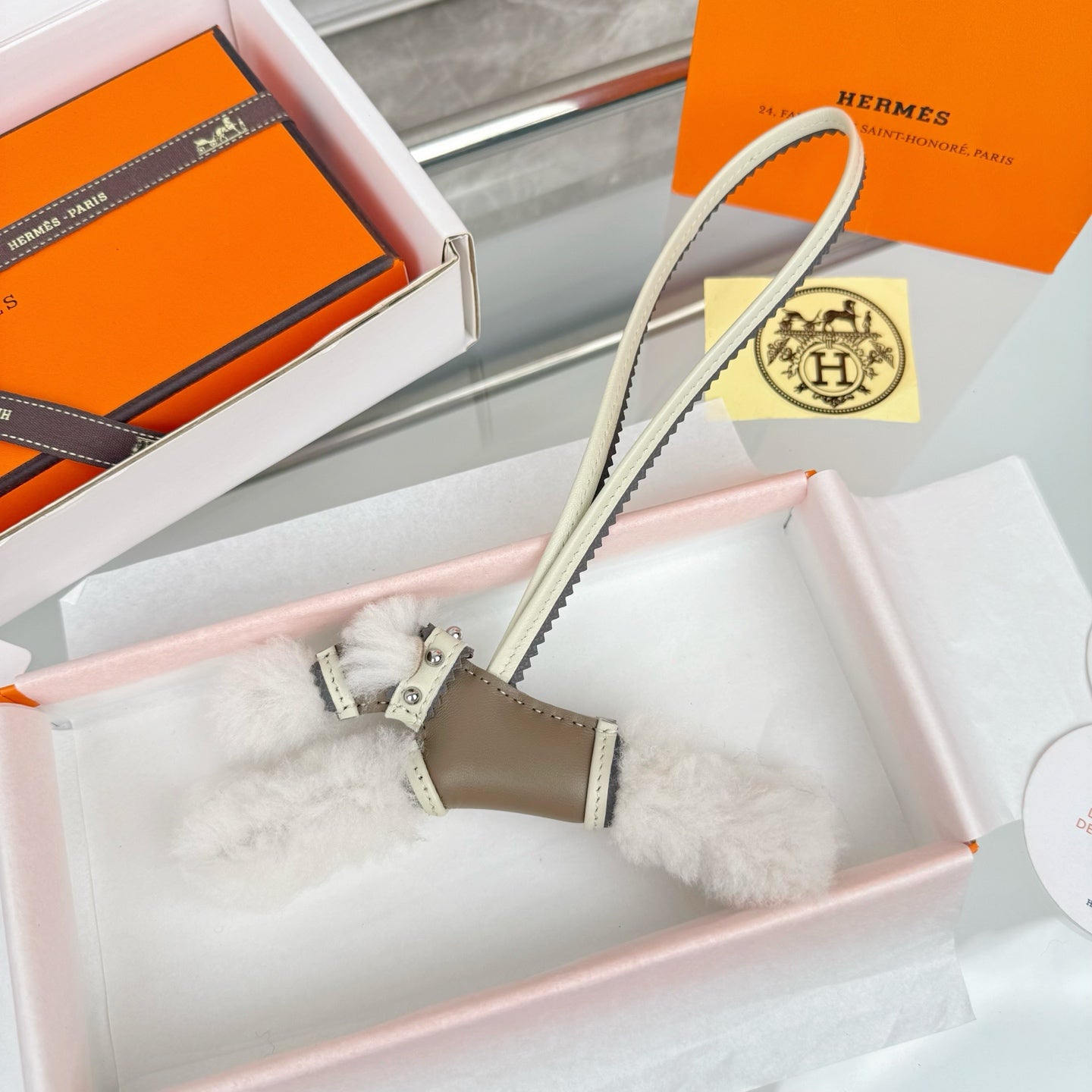 HM Budy Puppy Pendant Charm White Taupe Wool Cowhide