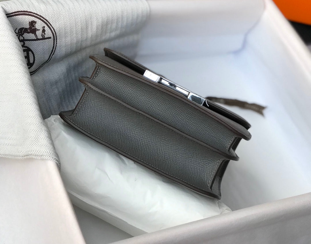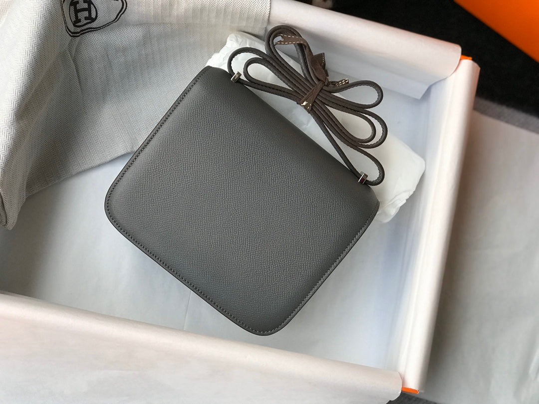 HM CONSTANCE BAG GREY EPSOM LEATHER SILVER HARDWARE