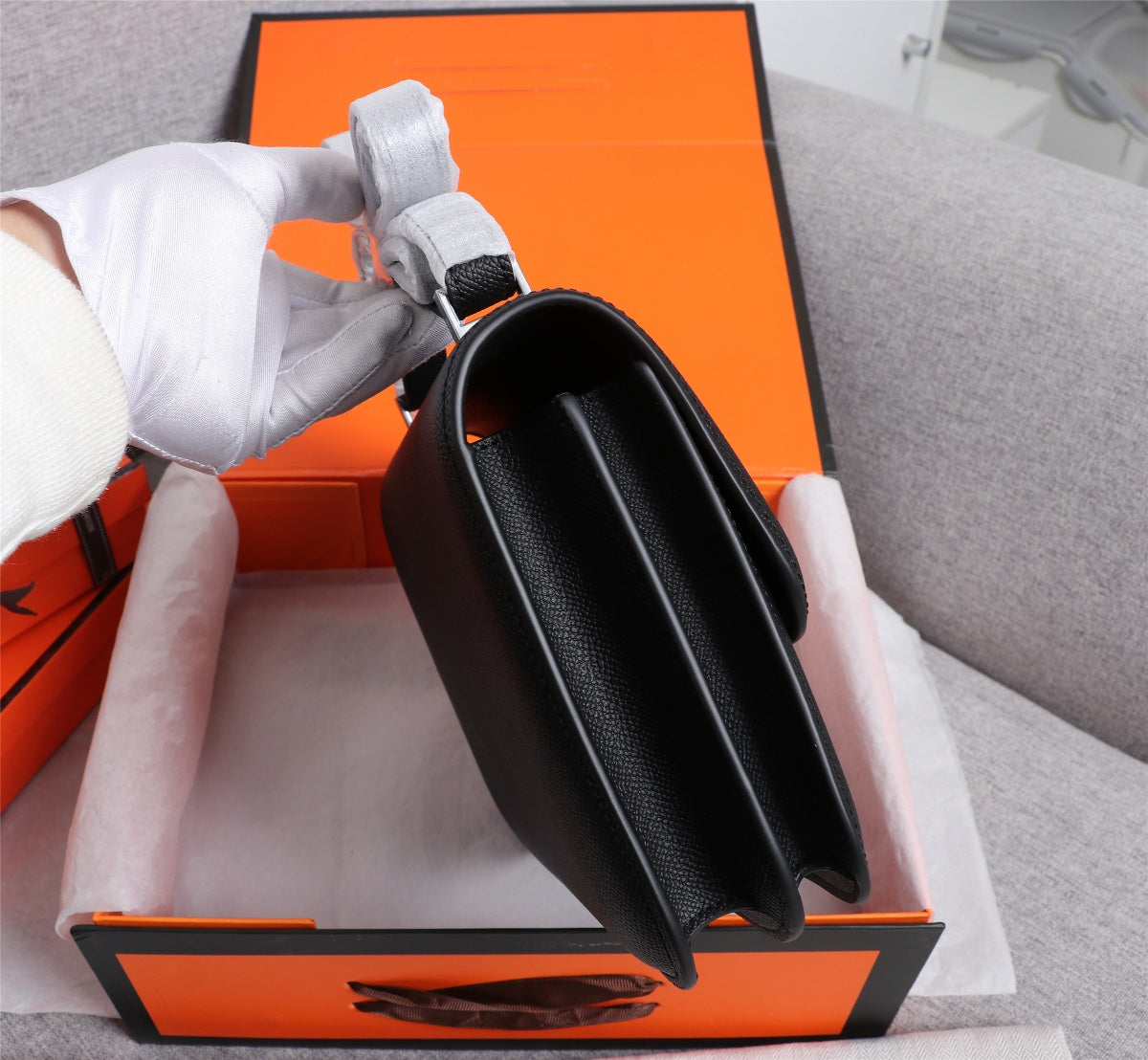 HM CONSTANCE BAGS 19 BLACK EPSOM SILVER HARDWARE