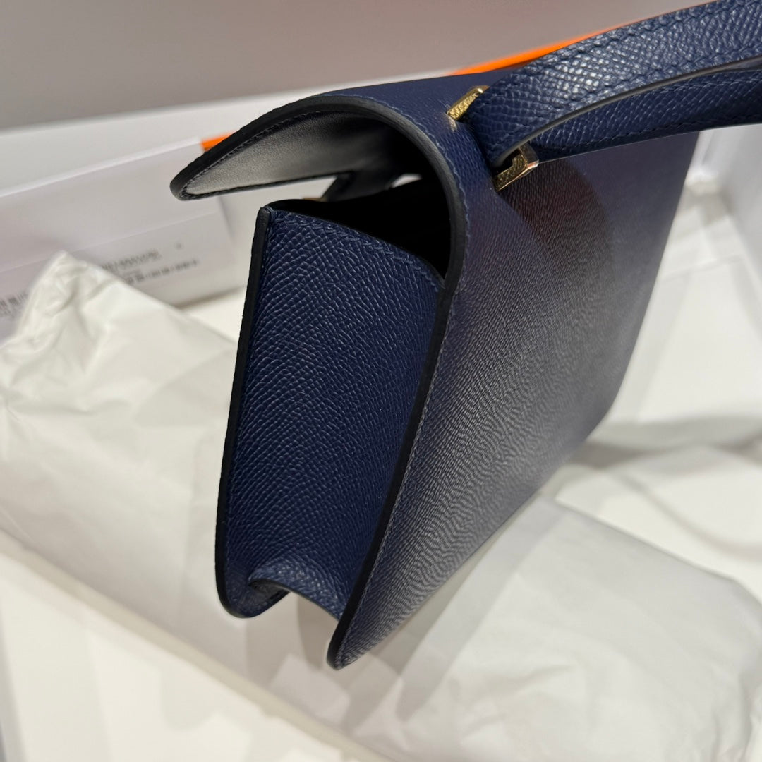 HM Constance Elan 24cm Bag Dark Blue Epsom Leather Gold Hardware
