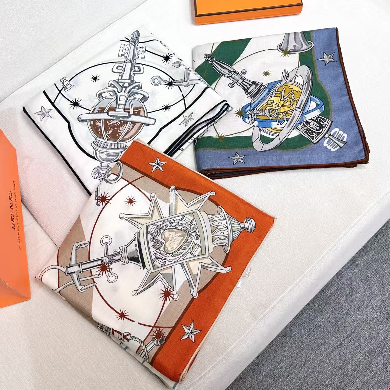 HM Creative Origins Scarf 135CM Orange White Cashmere Silk 969436