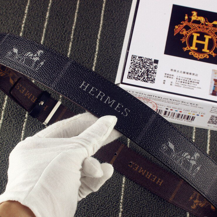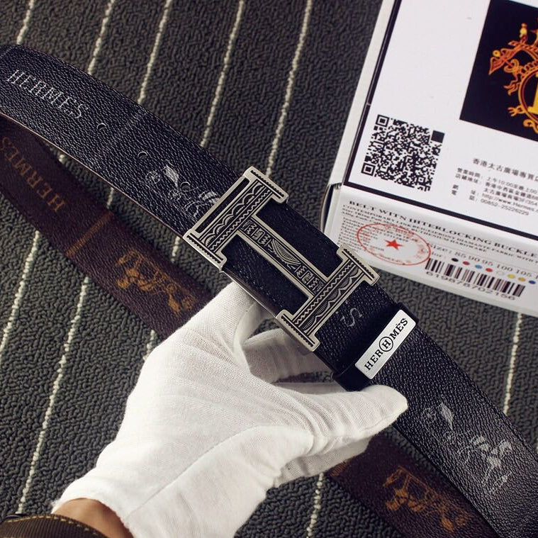 HM Double-sided Belt 38mm Black Cowhide Gold Buckle 620361
