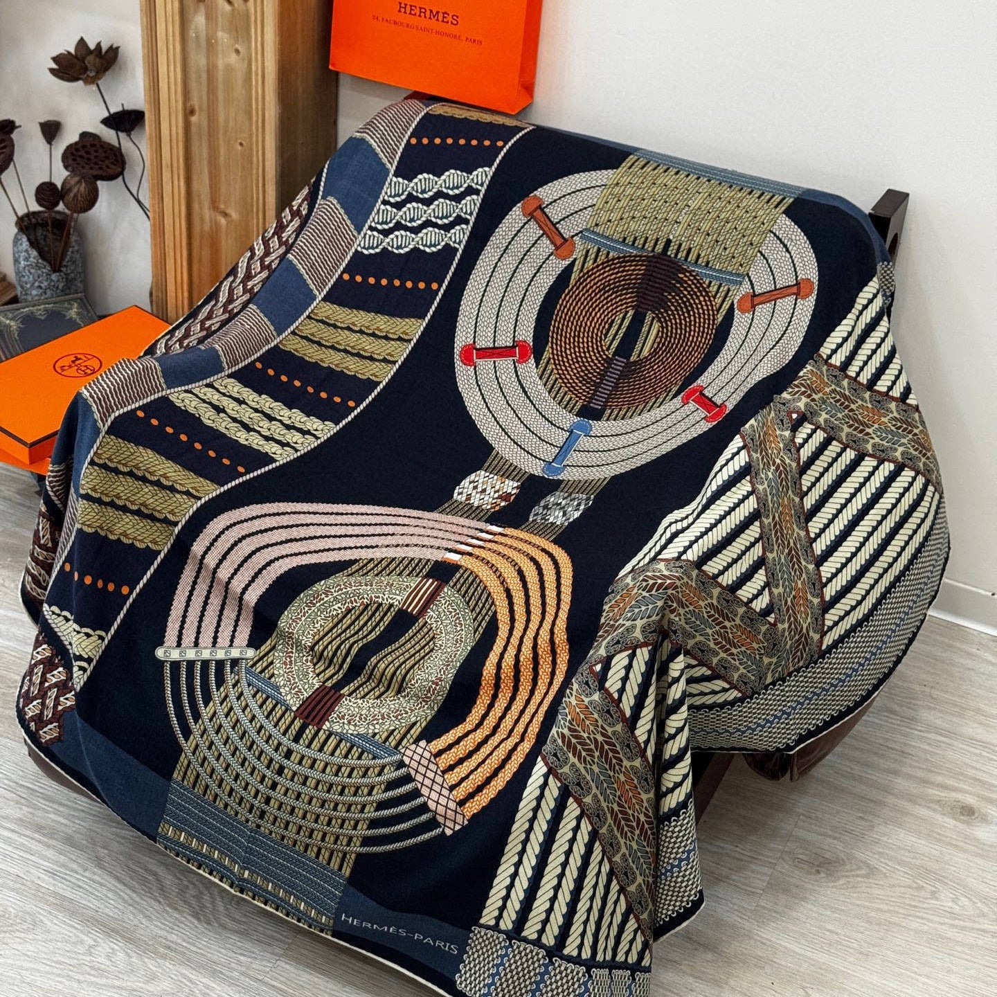 HM Dressage Tressage 140 CM Black White Colorful Cashmere And Silk 293224