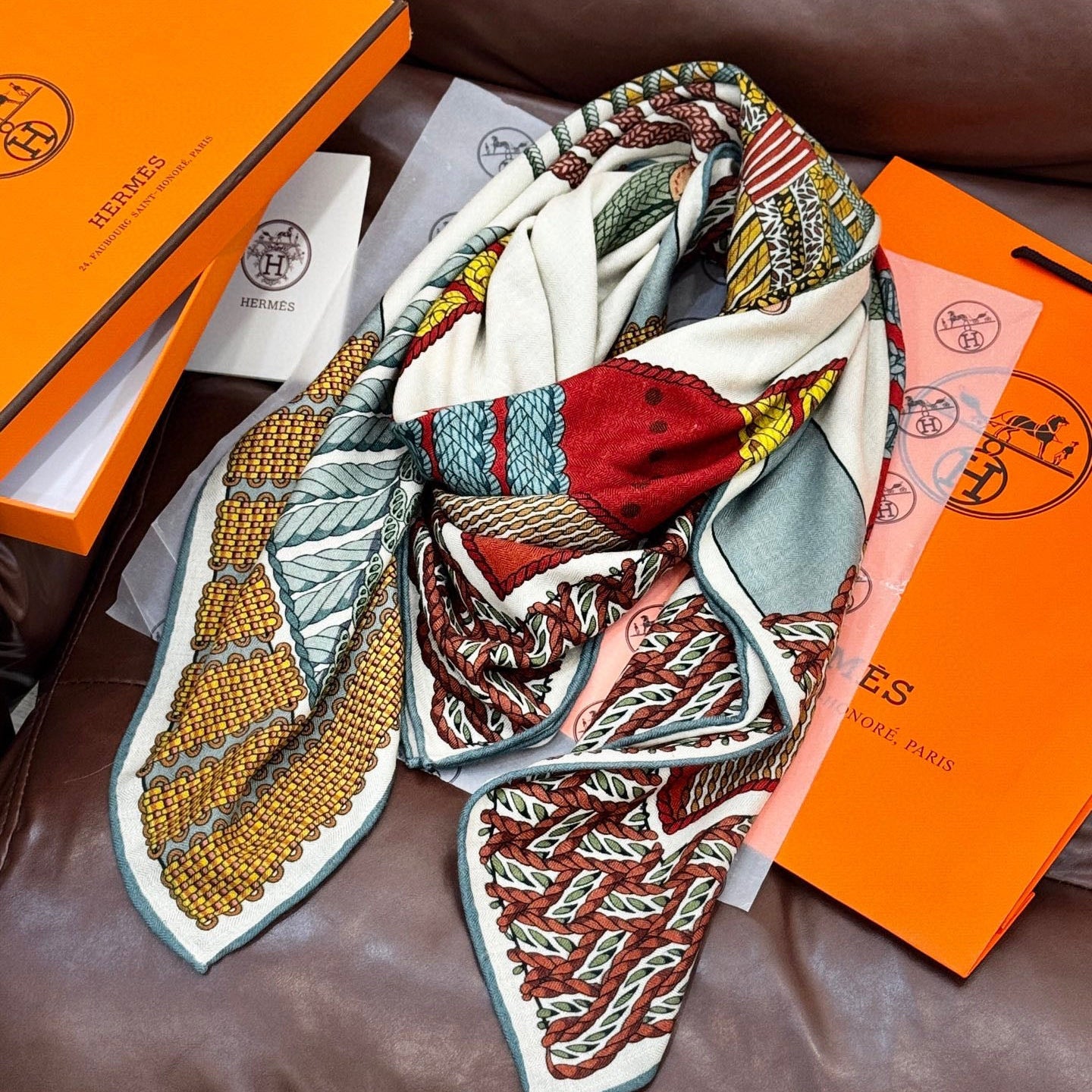 HM Dressage Tressage 140 CM Yellow Green Colorful Cashmere And Silk 293222