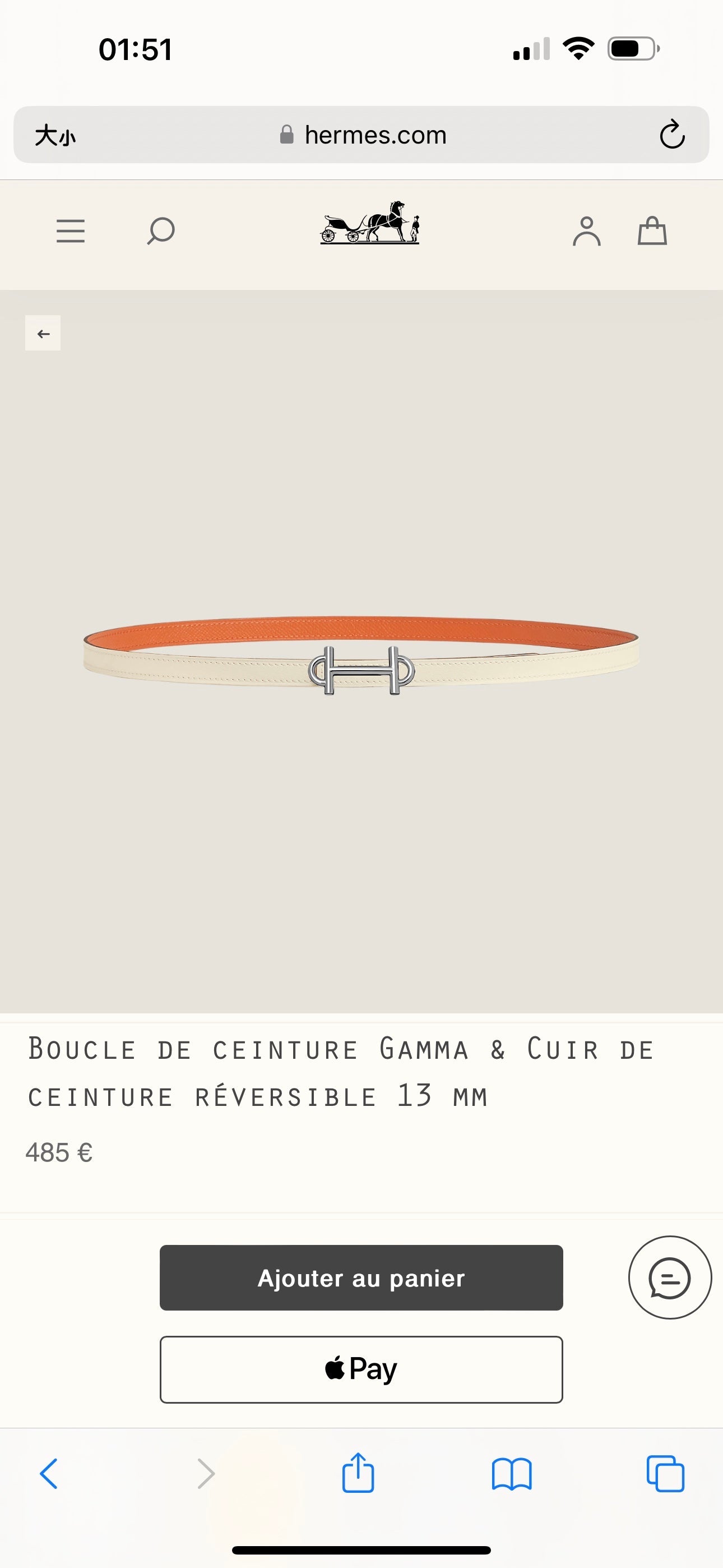 HM GAMMA BUCKLE & REVERSIBLE WHITE AND ORANGE LEATHER STRAP 13MM SILVER HARDWARE