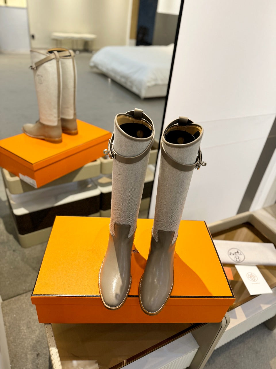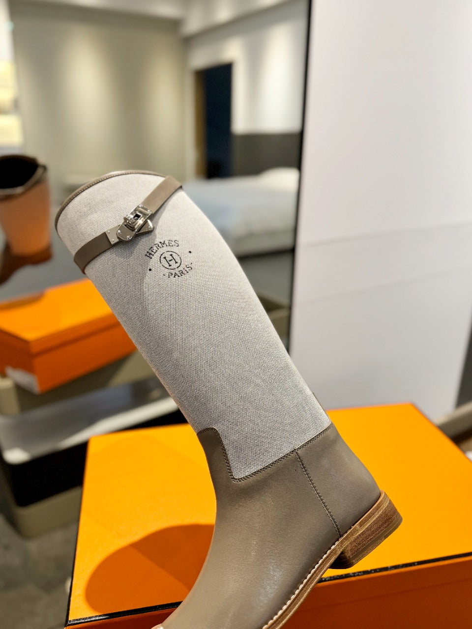 HM Jumping Boot 20mm Beige Light Brown Mix Grey White Cowhide And Tech Fabric 961655