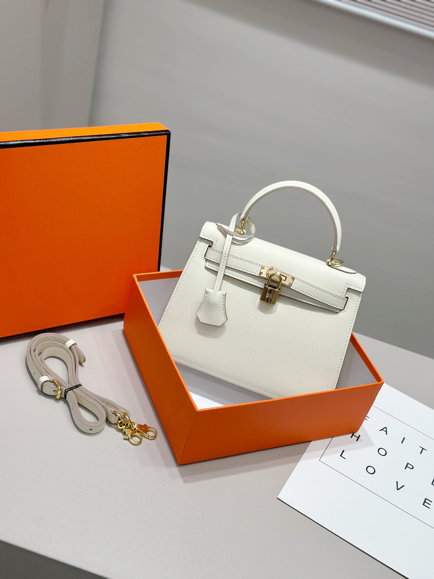 HM Kelly 25cm Cream Epsom Leather Gold Hardware