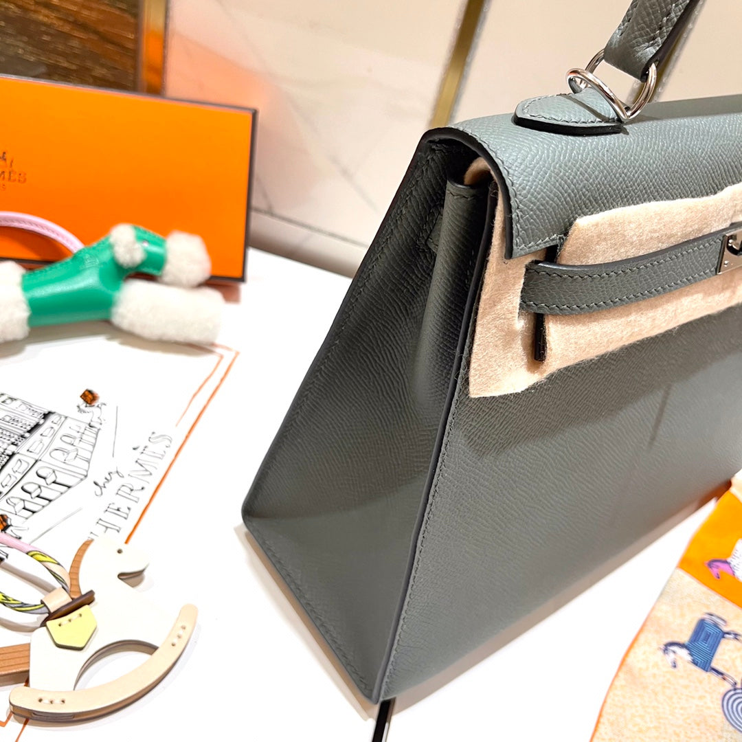 HM KELLY 25CM GRIS MOUETTE EPSOM LEATHER SILVER HARDWARE