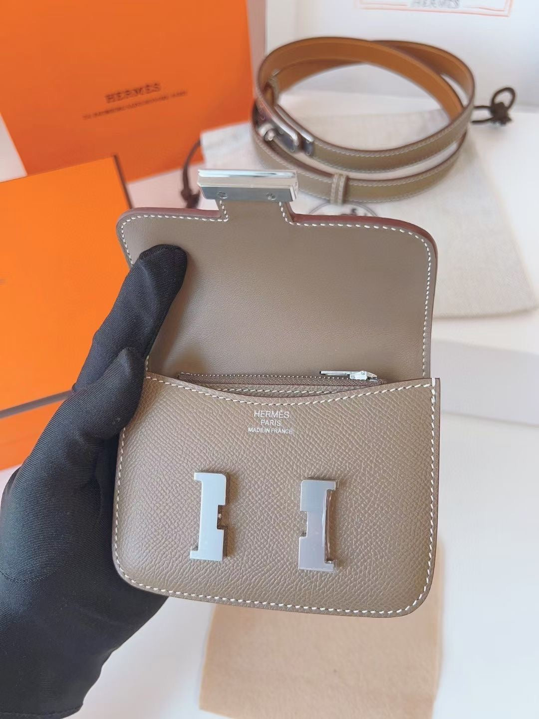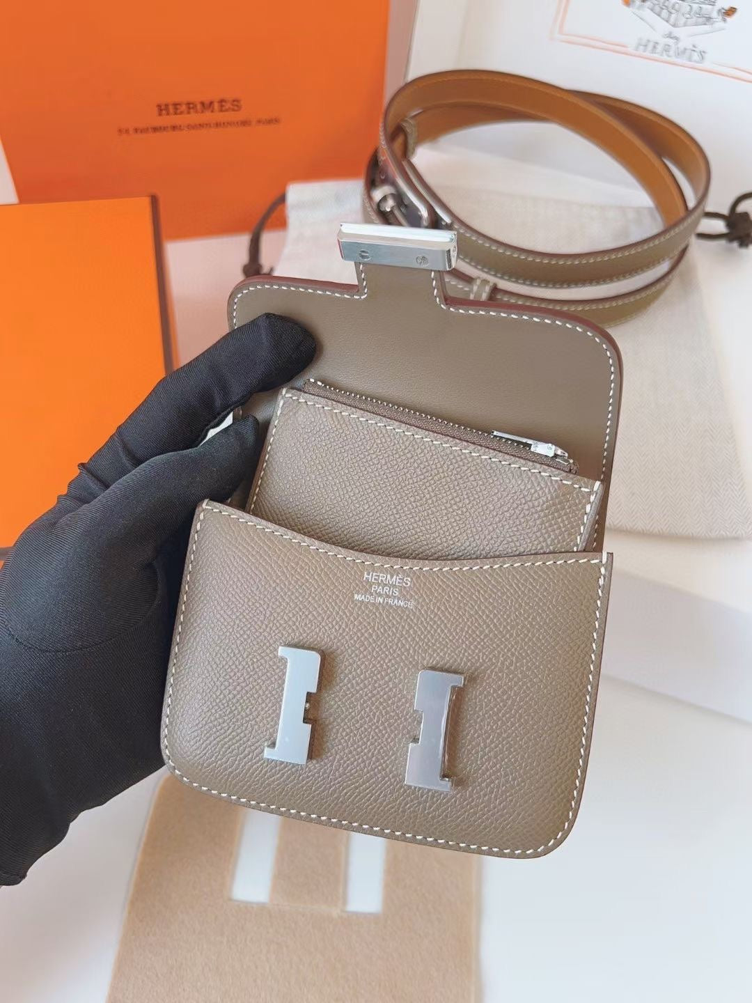 hm kelly belt 18mm with constance slim grey epsom silver hardware