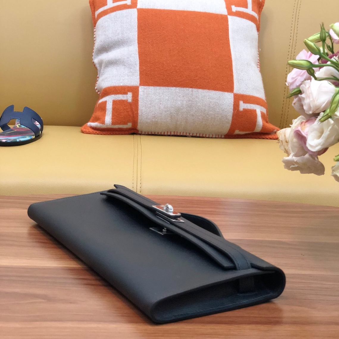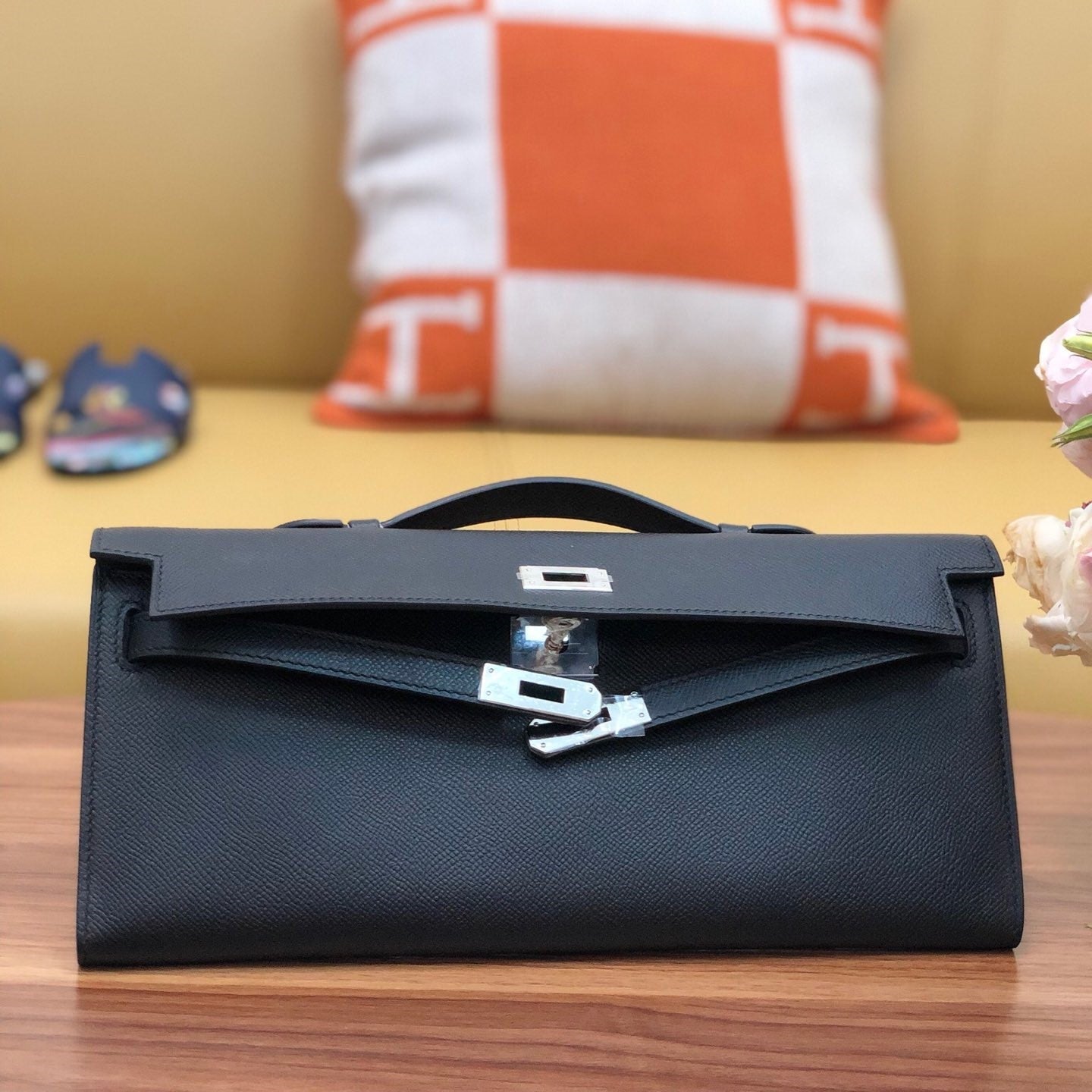HM Kelly Cut 31cm Black Swift Leather Shw Silver Hardware