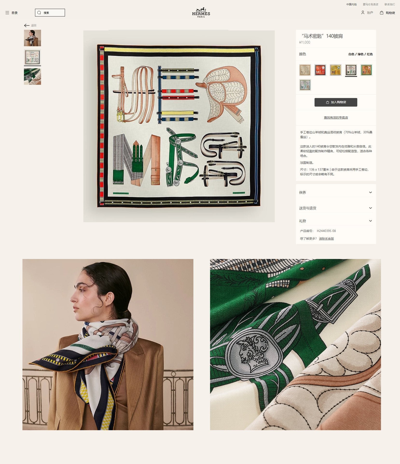 - Material: 70% Cashmere, 30% Silk