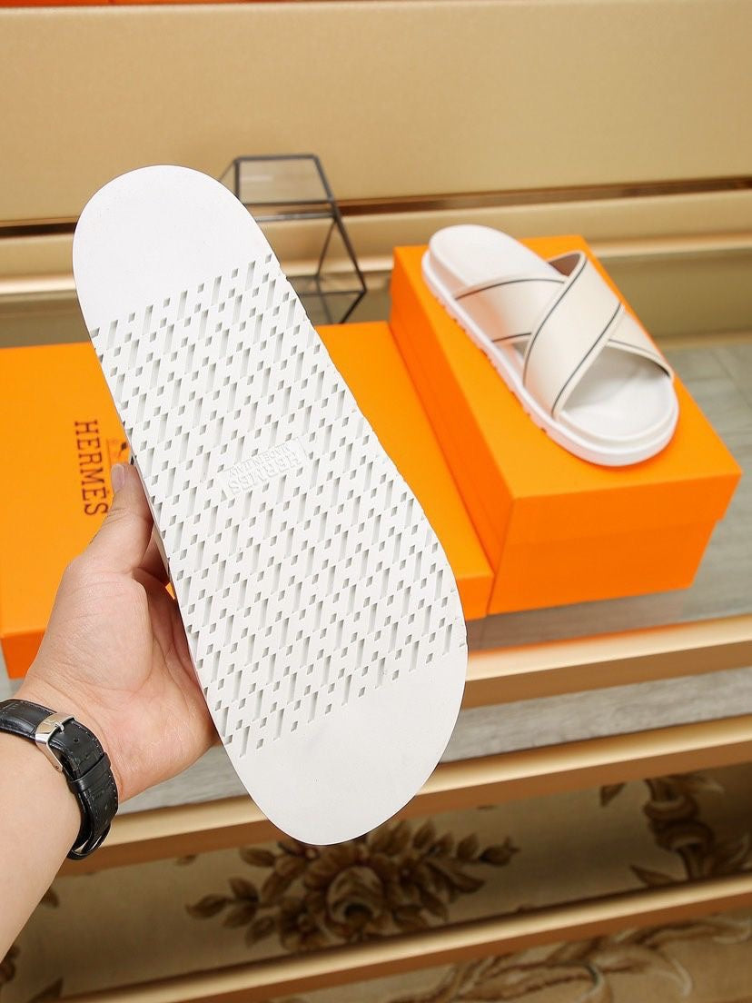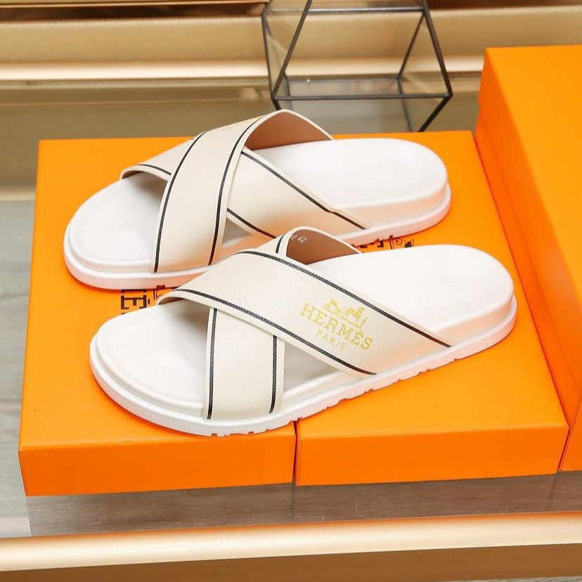 HM Men's Cross Strap Slide Beige Cowhide 544097