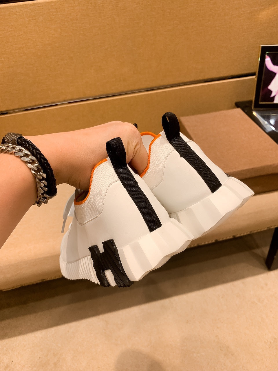 HM Men's Depart Slip-on Sneaker White Knit Cowhide 263690