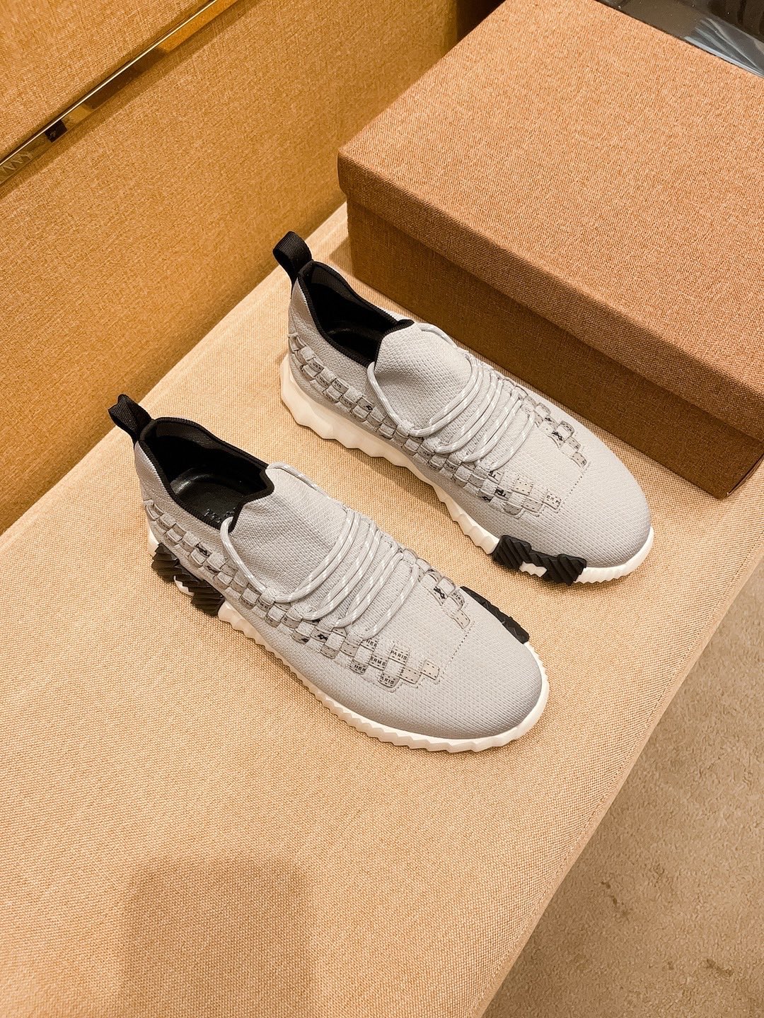 HM Men's Flex Slip-on Sneaker Grey Knit Cowhide 671703