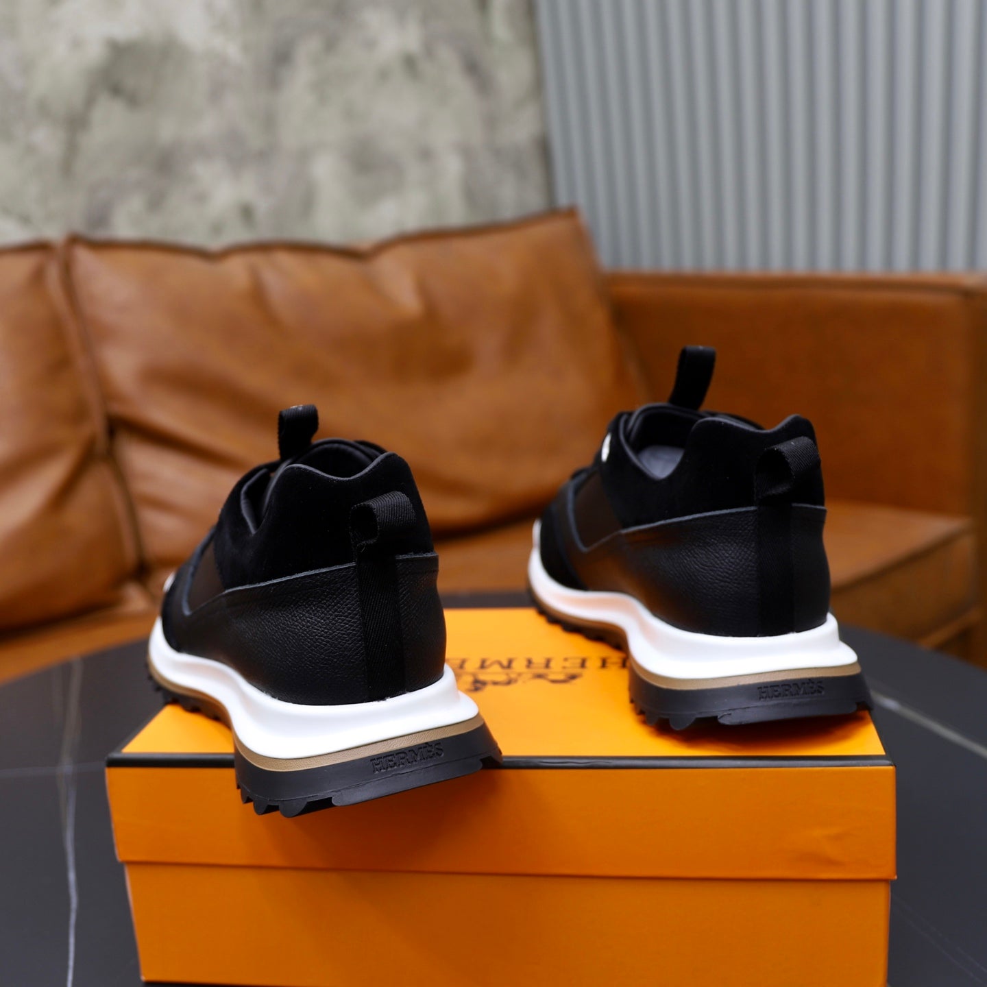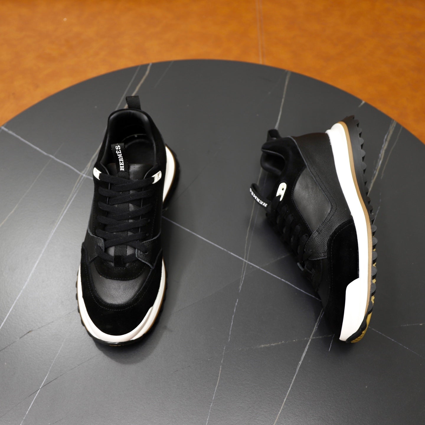 HM Men's Leader Sneaker Black Suede Calfskin 747919