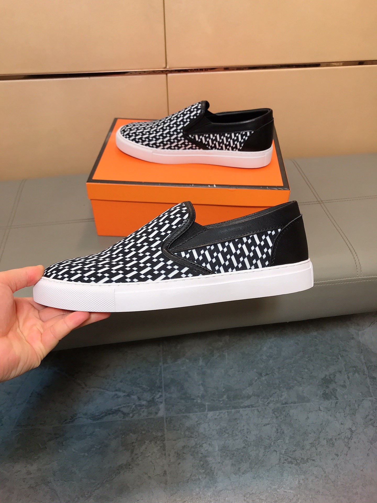 HM Men's Loafer Black Printed Fabrics Rubber 590009