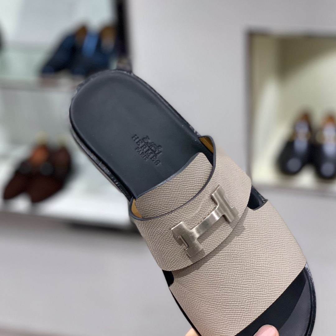 HM Men's Slide Beige Cowhide 567151