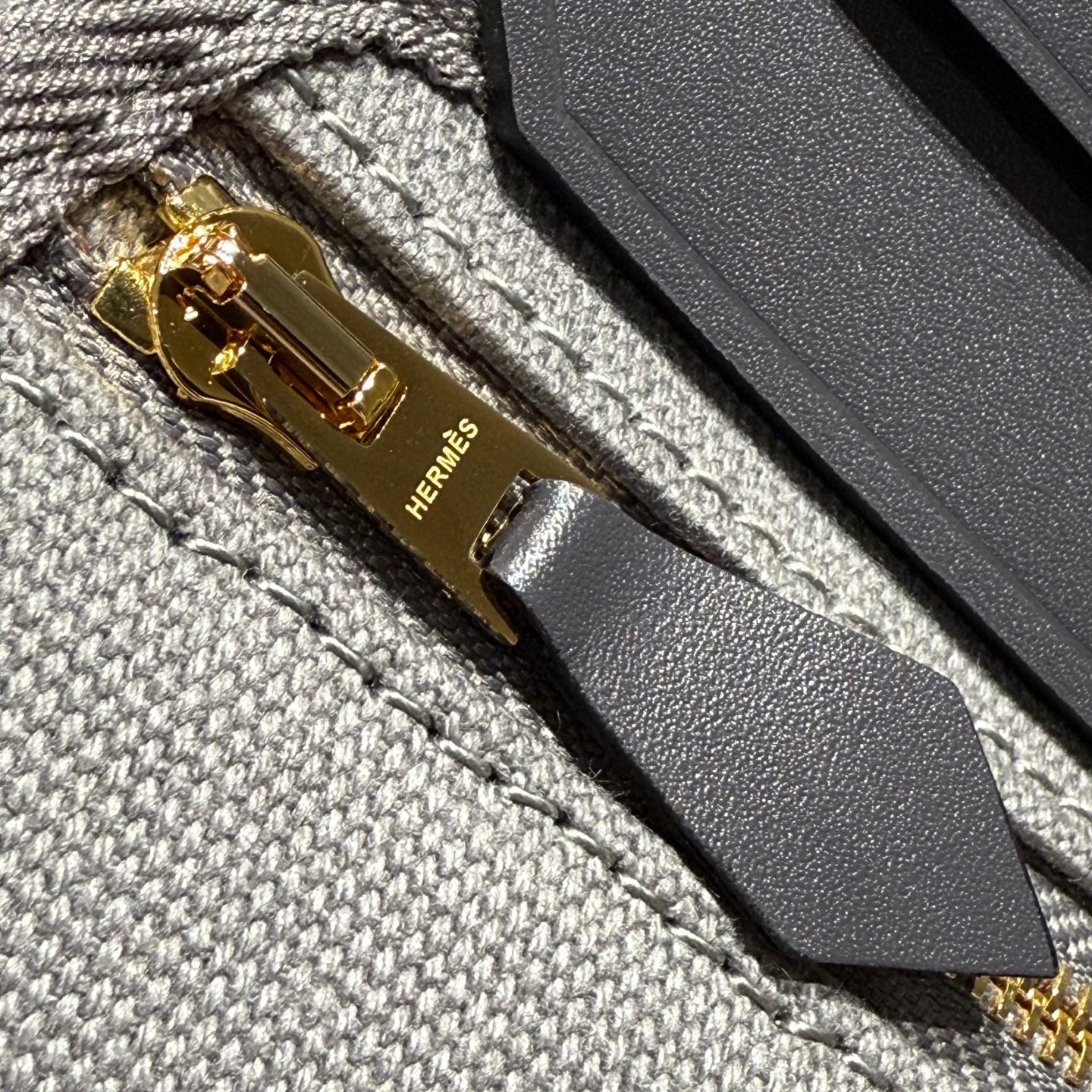HM Mini Herbag Gold Buckle 20 Gray Canvas and Hunter Cowhide 243270