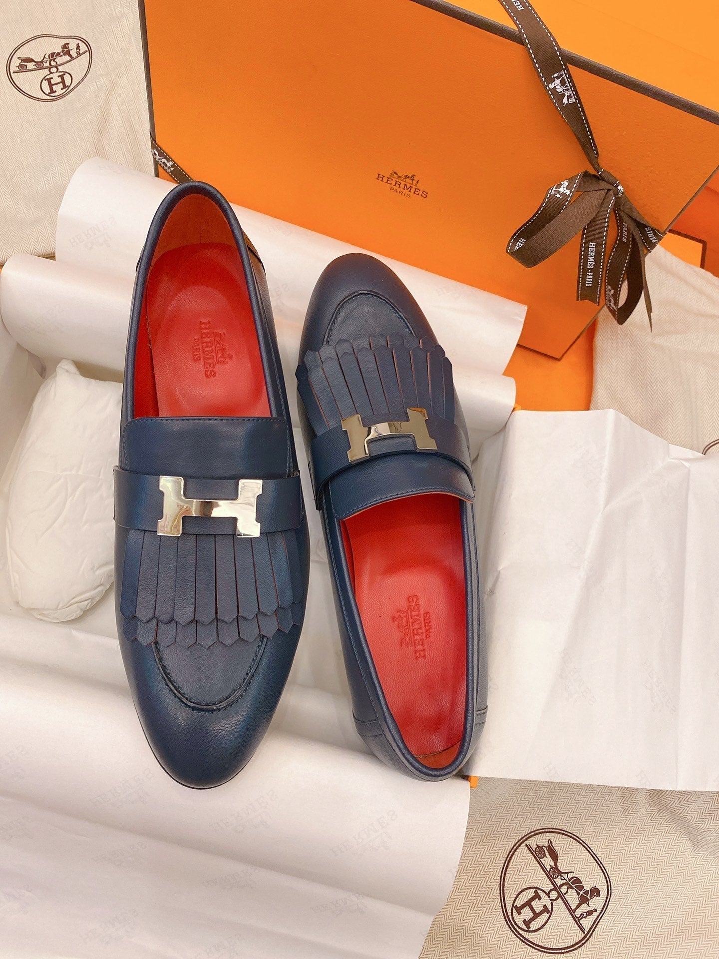 HM Mocassins Royal Loafers Navy Blue Goat Leather 348020