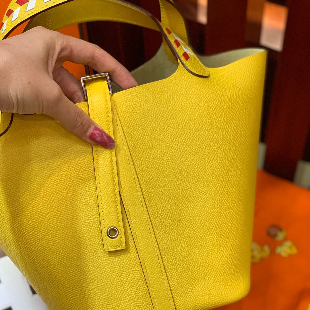 HM PICOTIN LOCK 18 LEMON EPSOM WITH BRAID STRAP