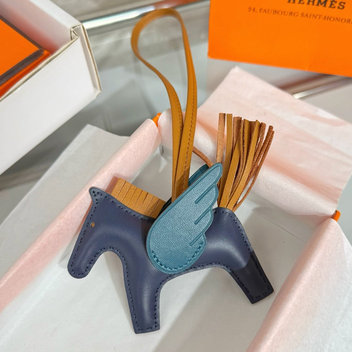 HM Rodeo Pegase PM Charm Navy Blue mix Brown Lambskin