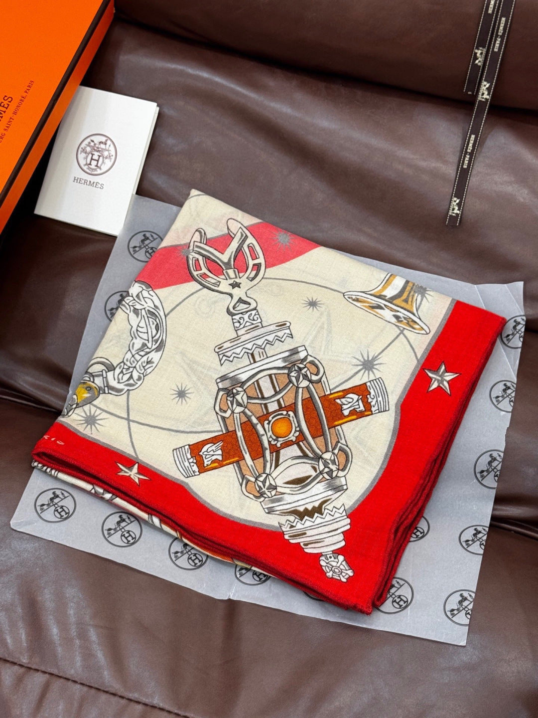 HM Starry Night Chorus Scarf 140cm Red Beige Cashmere 970971