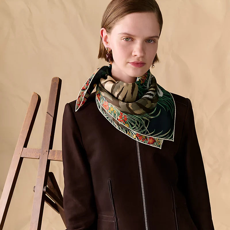 HM Tiger in Full Bloom 90 CM Black Colorful Cashmere and Silk 293071
