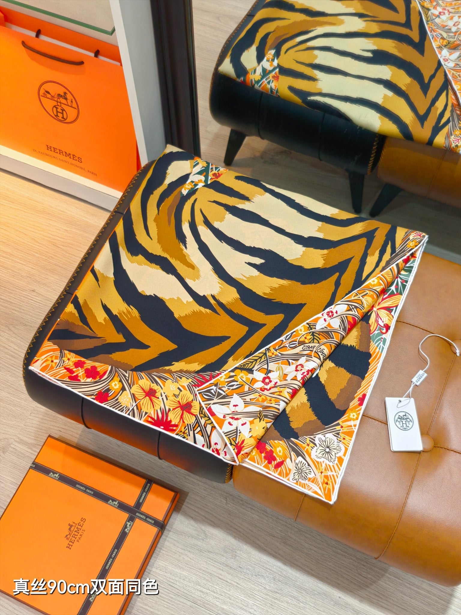 HM Tiger in Full Bloom 90 CM Orange Colorful Cashmere and Silk 293068
