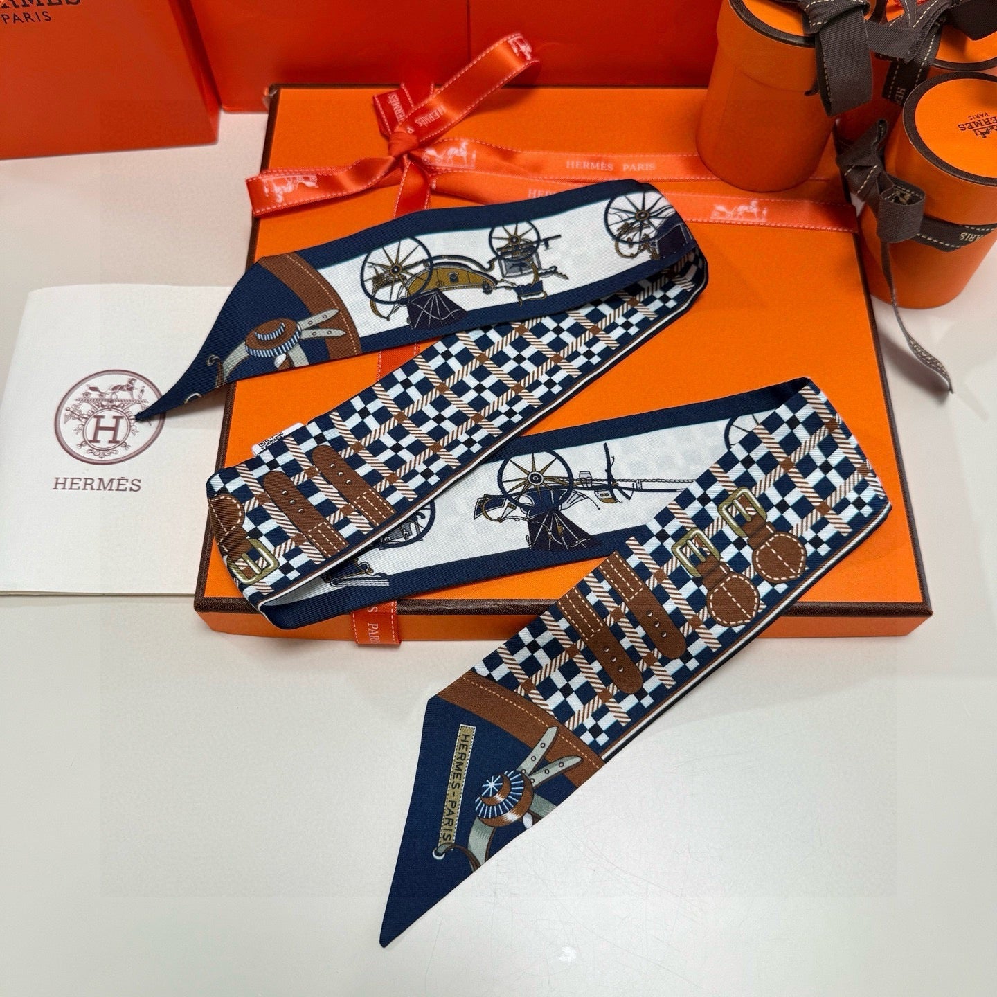 HM Twilly Mini Scarf 86CM Black Brown Mulberry Silk 968842