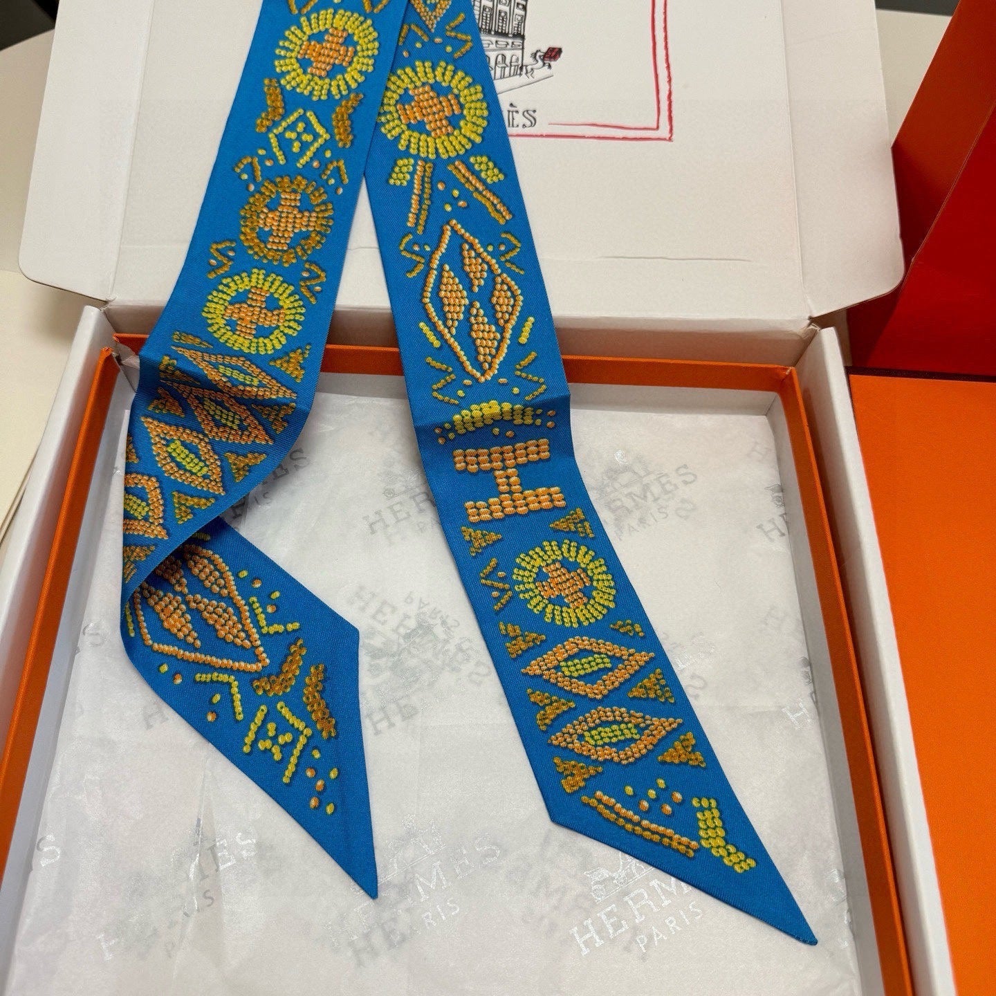 HM Twilly Mini Scarf 86CM Blue Mulberry Silk 969053