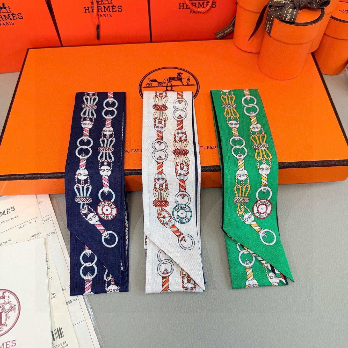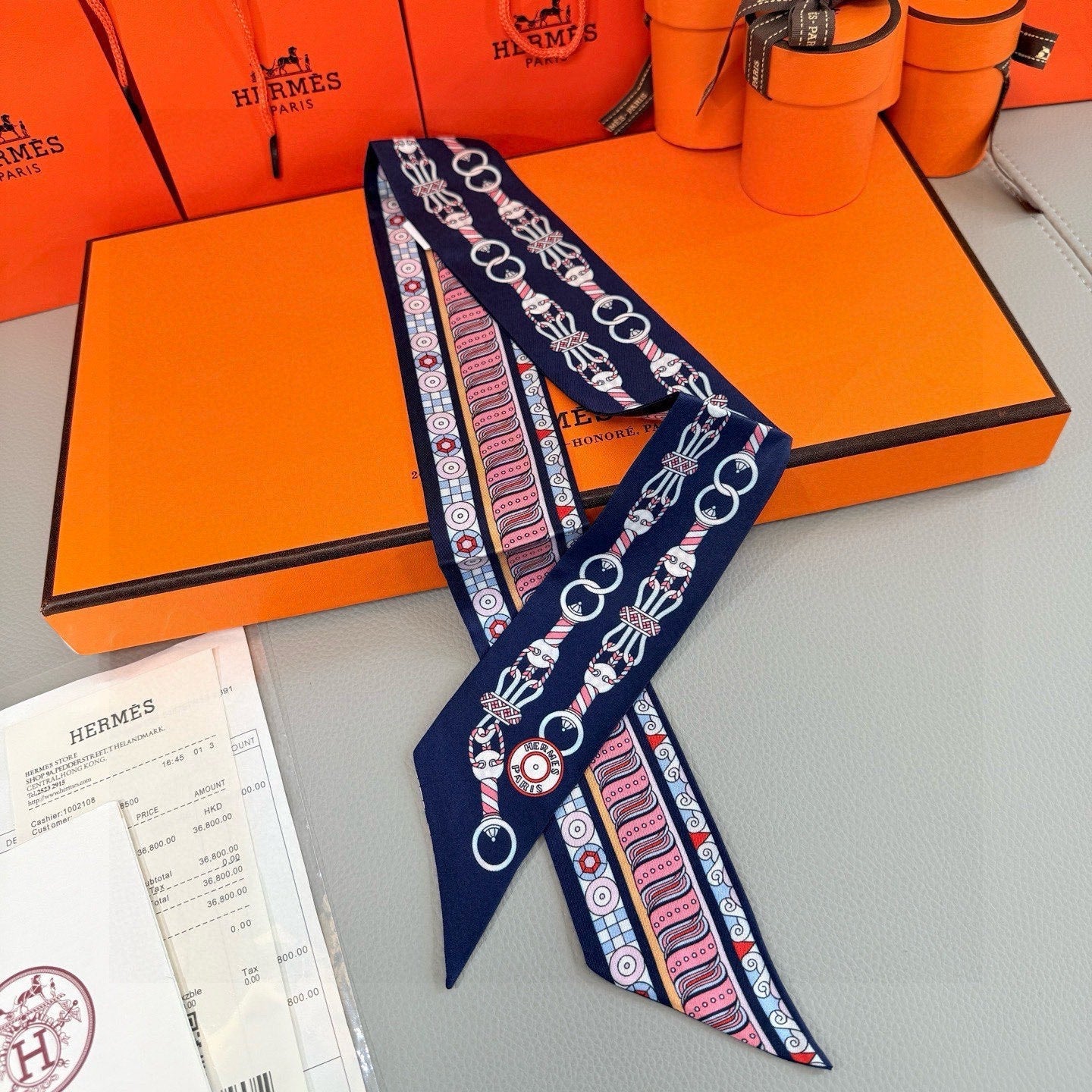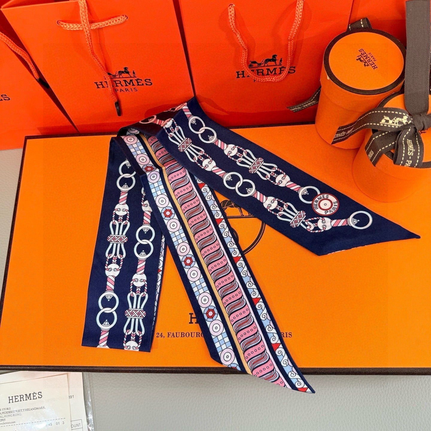 HM Twilly Mini Scarf 86CM Blue Pink Mulberry Silk 967448