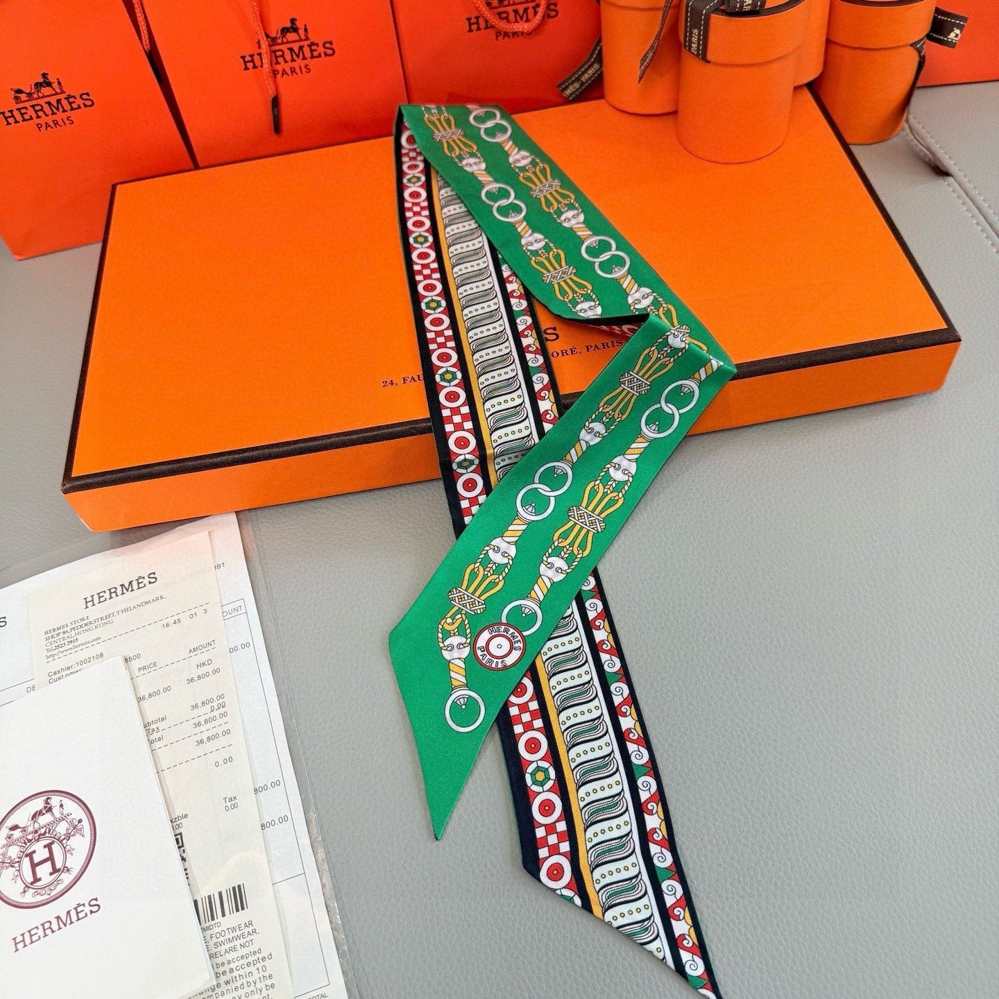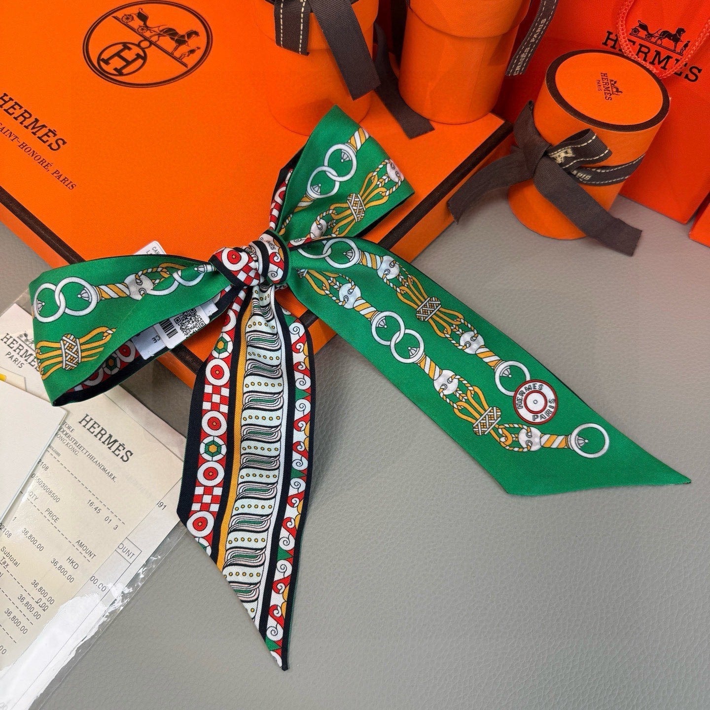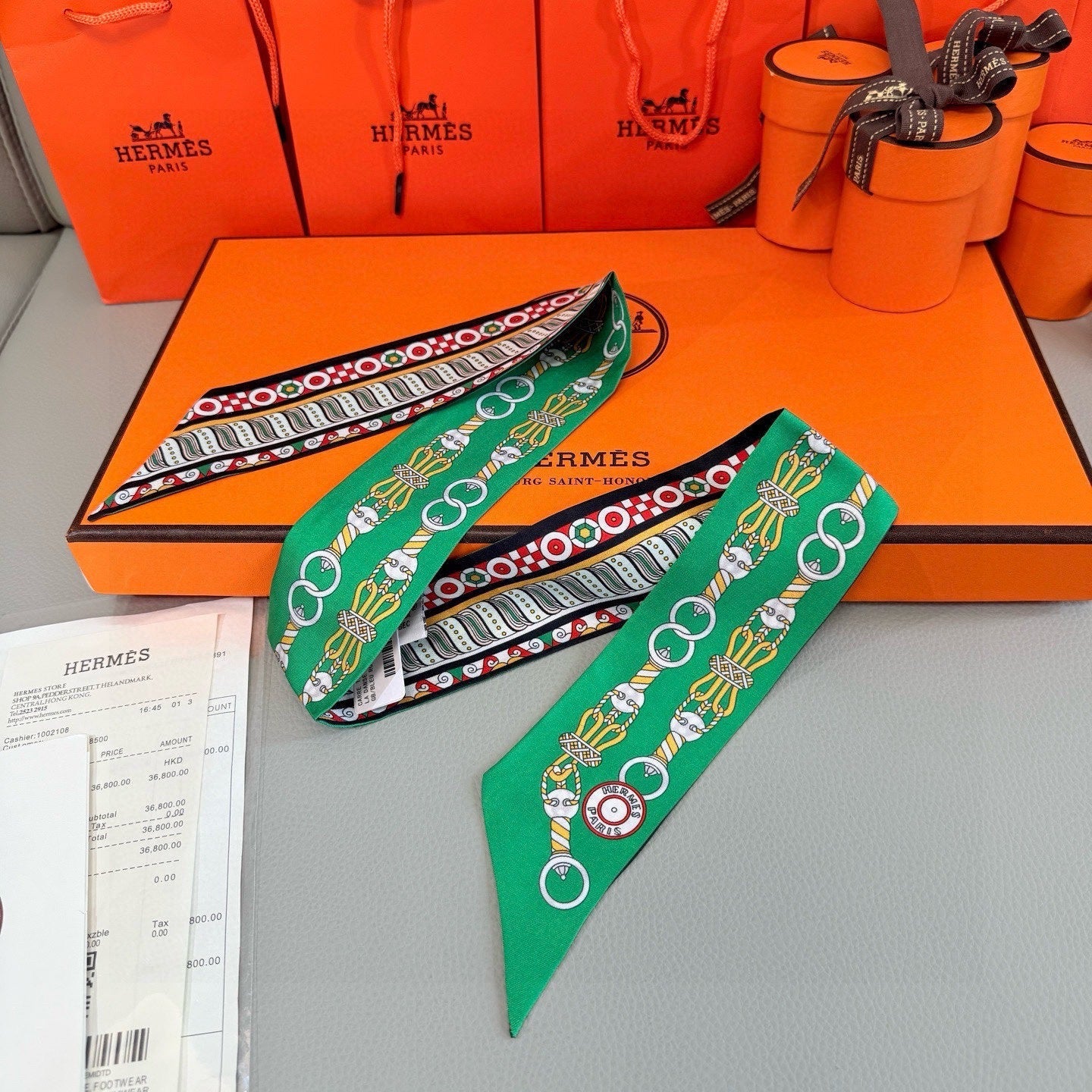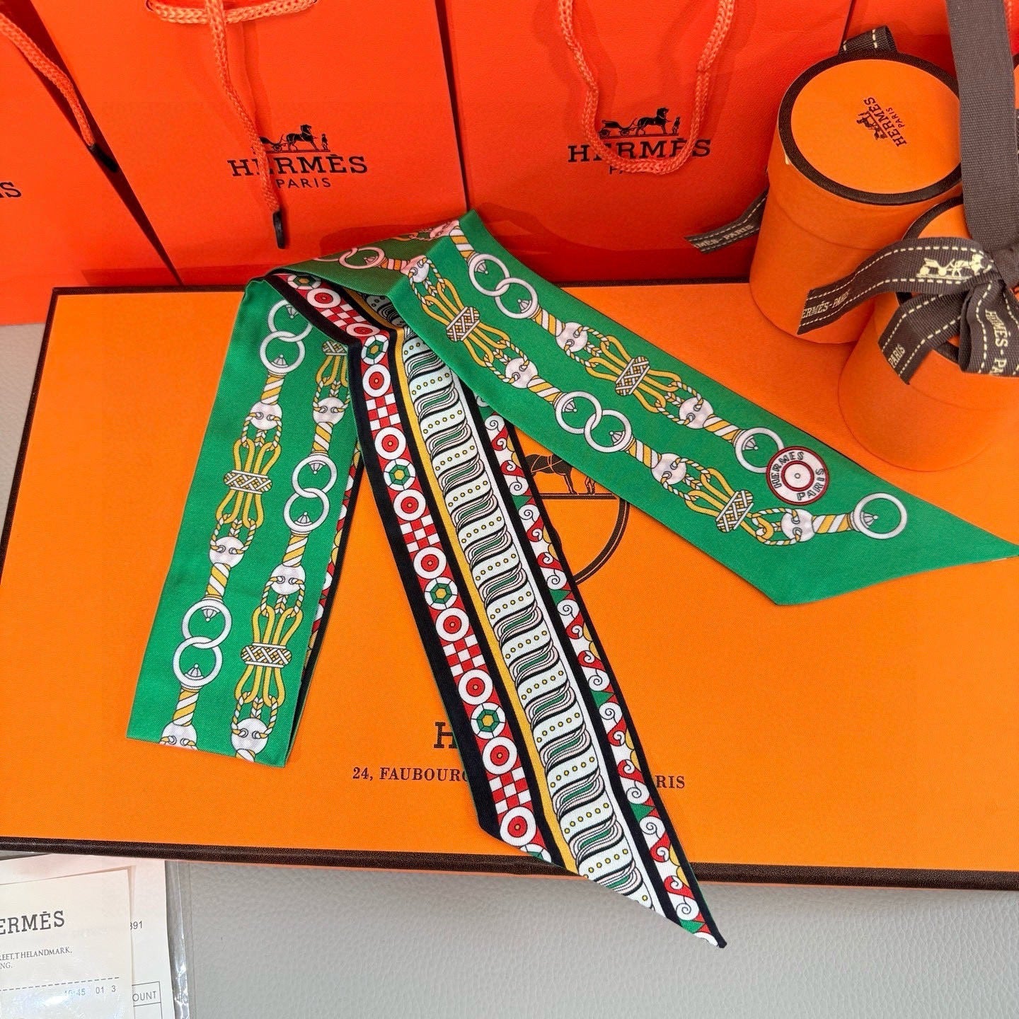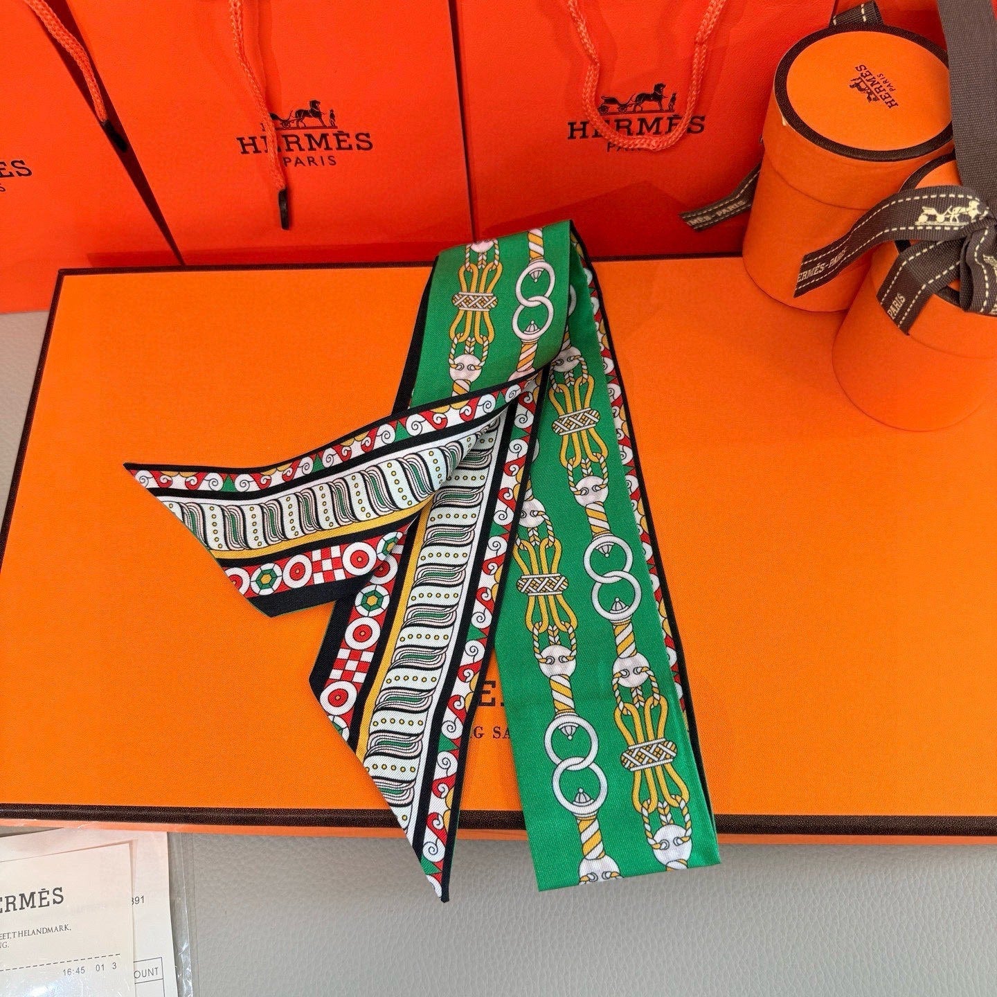HM Twilly Mini Scarf 86CM Green Mulberry Silk 967447