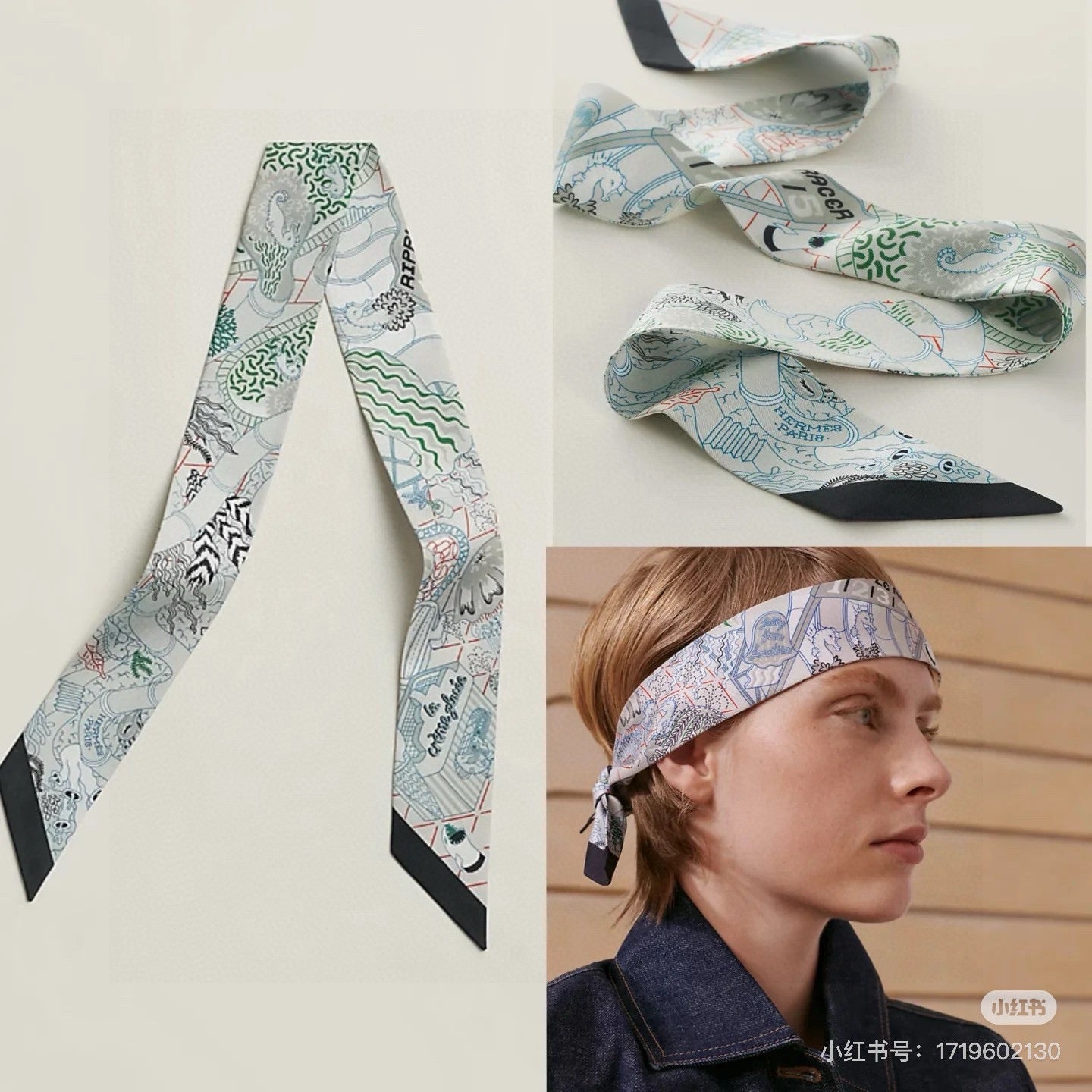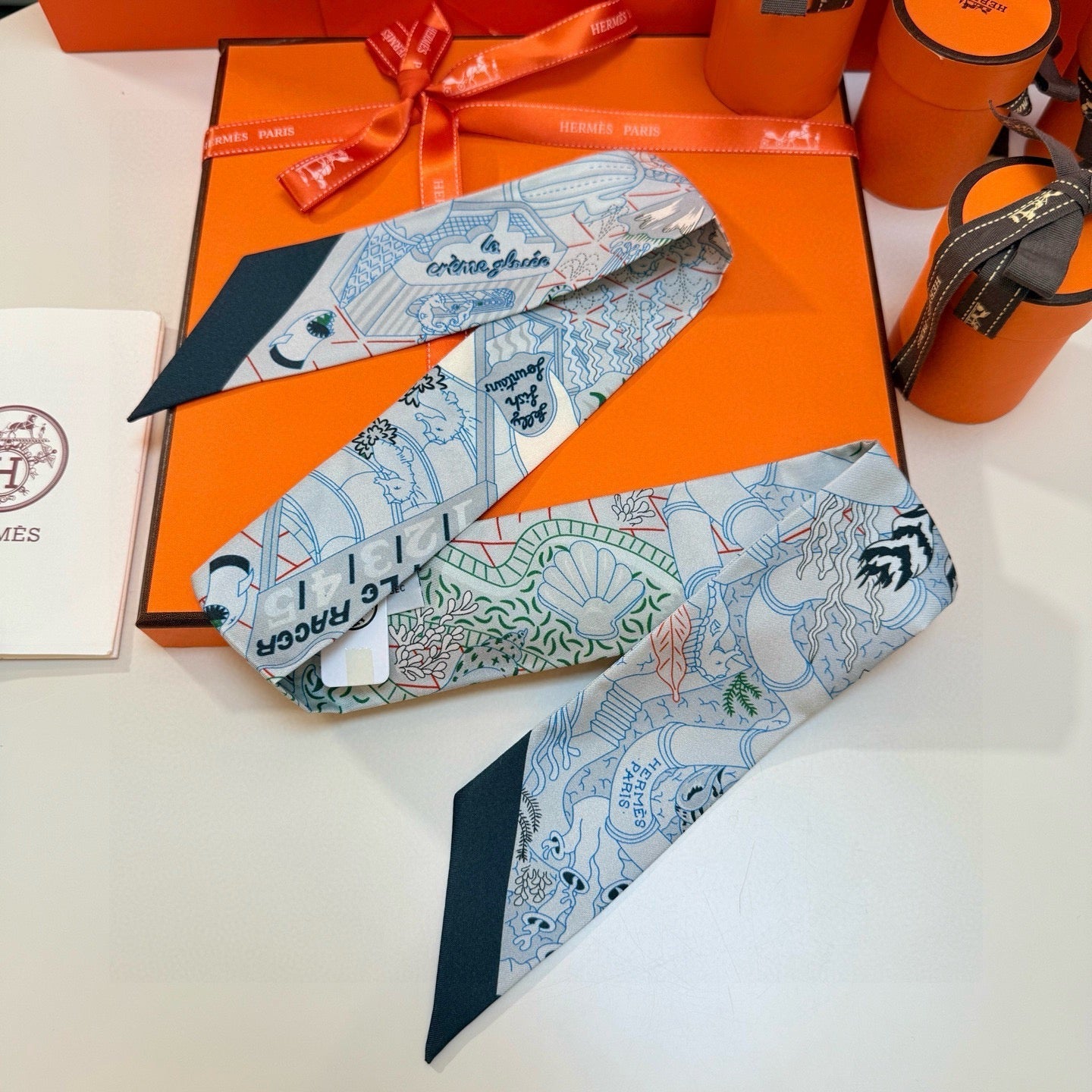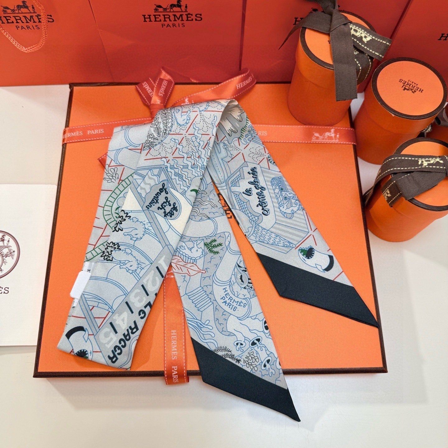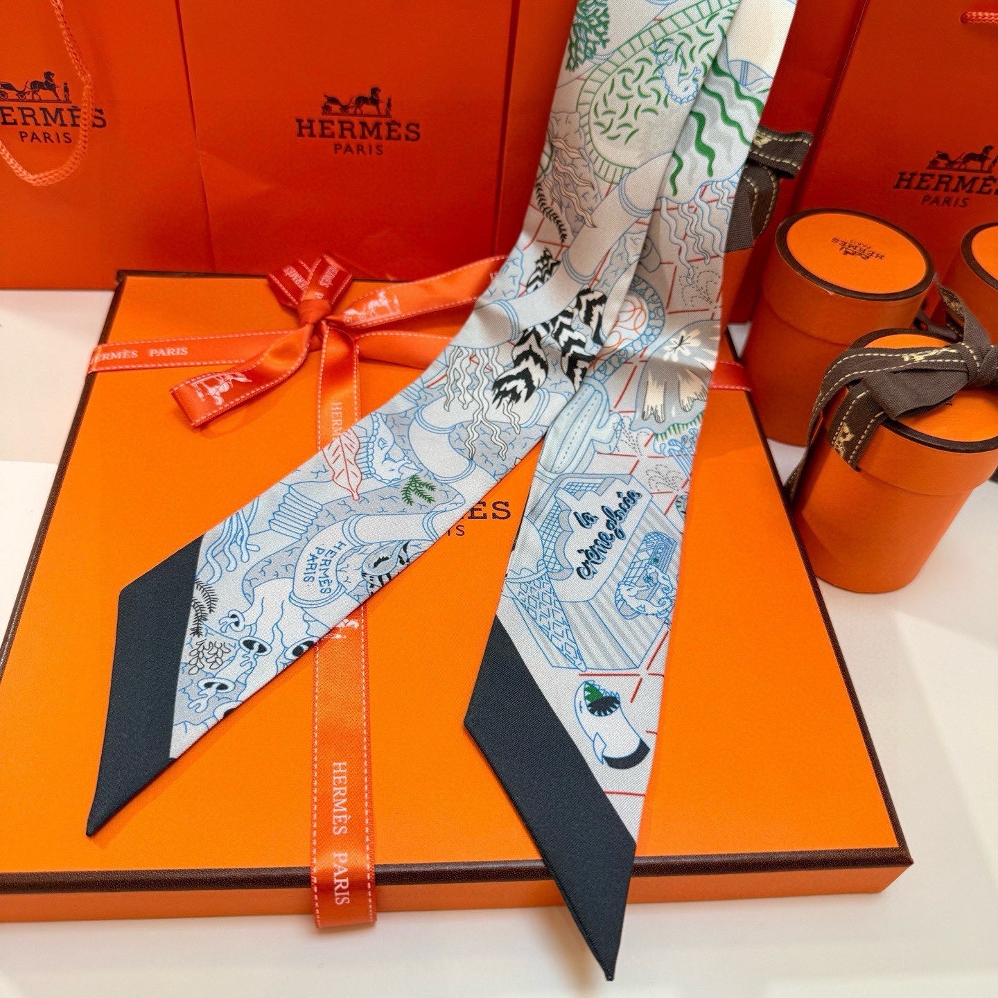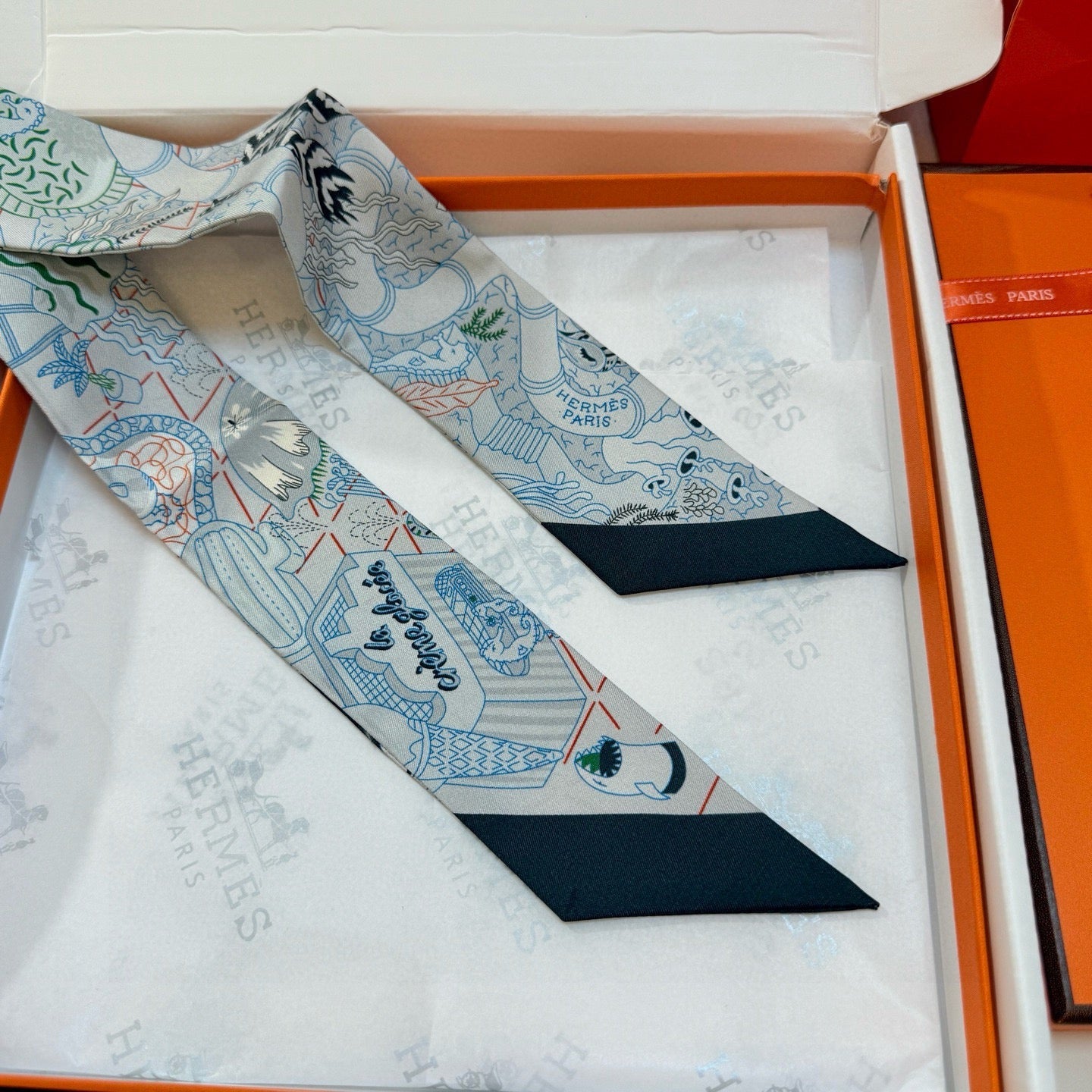 HM Twilly Mini Scarf 86CM Light Blue Colorful Mulberry Silk 957154