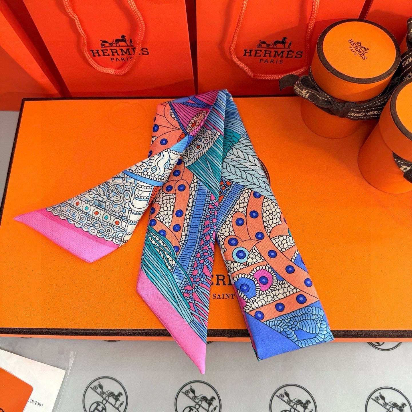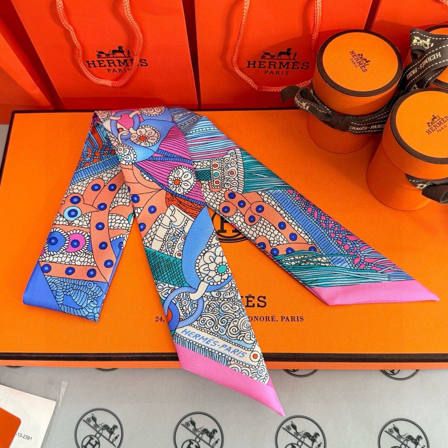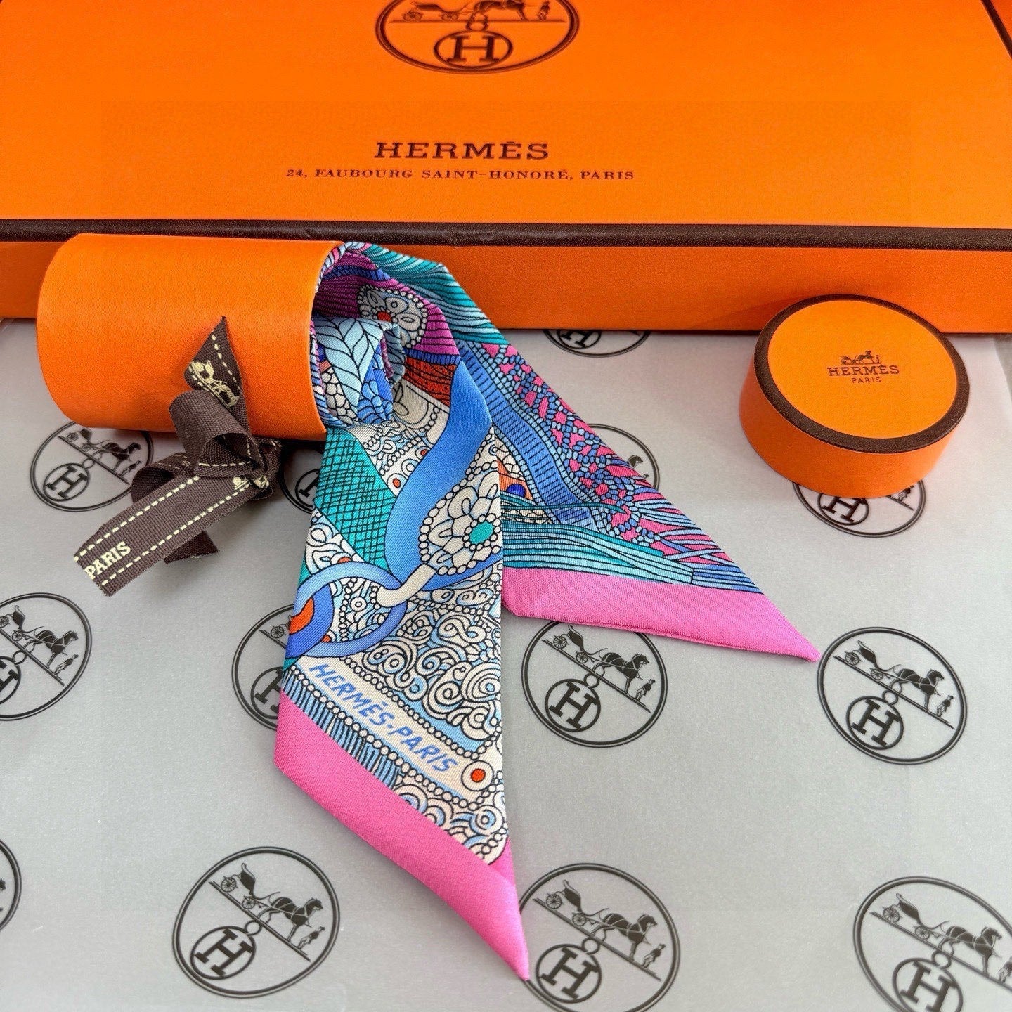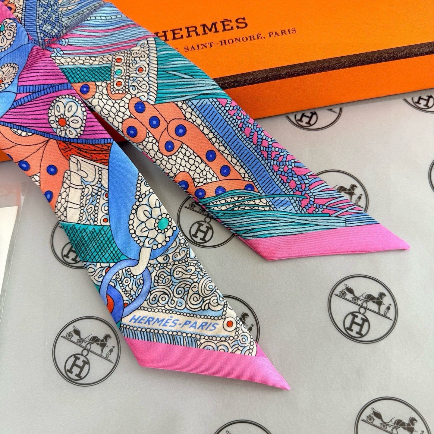 HM Twilly Mini Scarf 86CM Pink Blue Mulberry Silk 965638