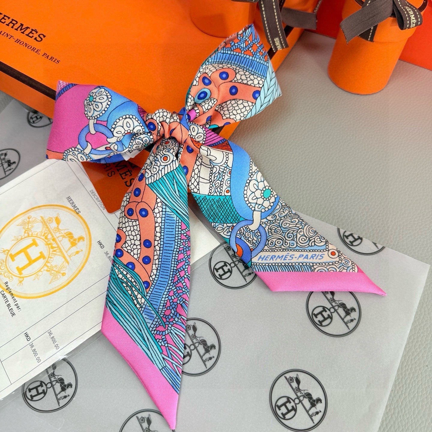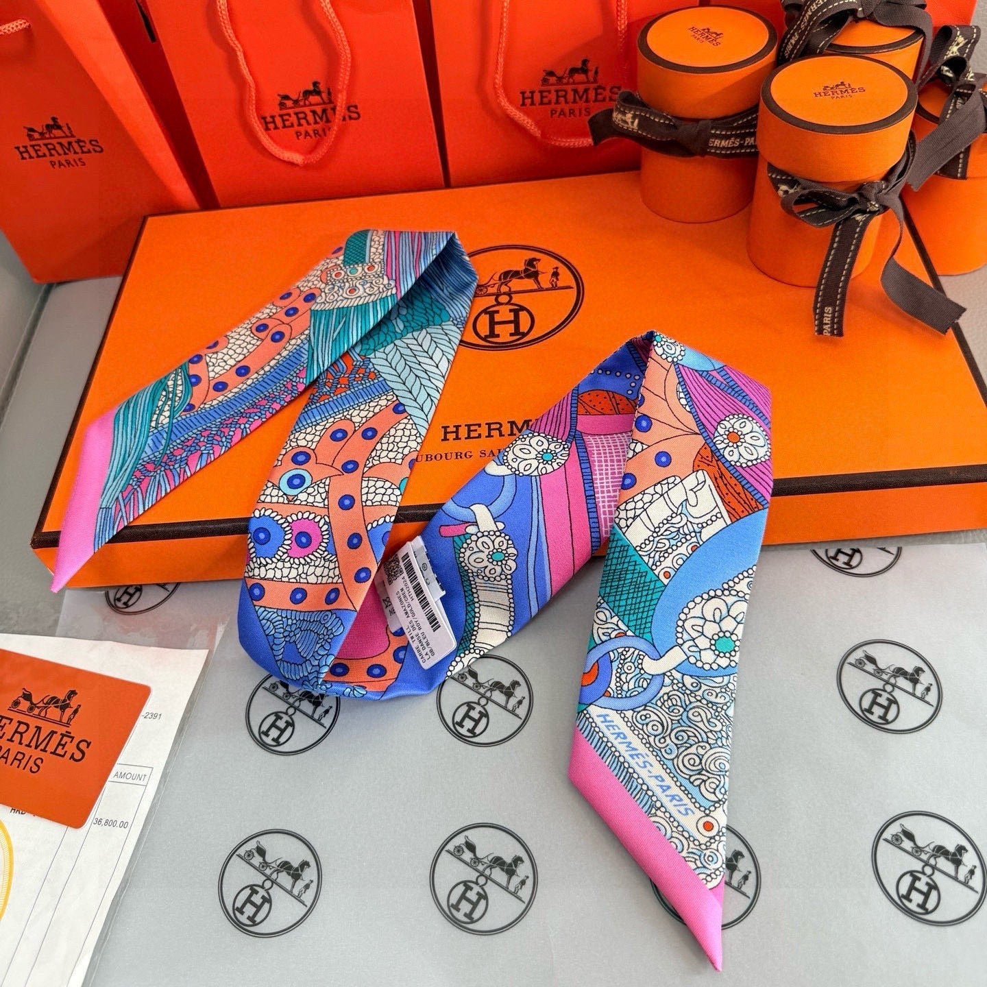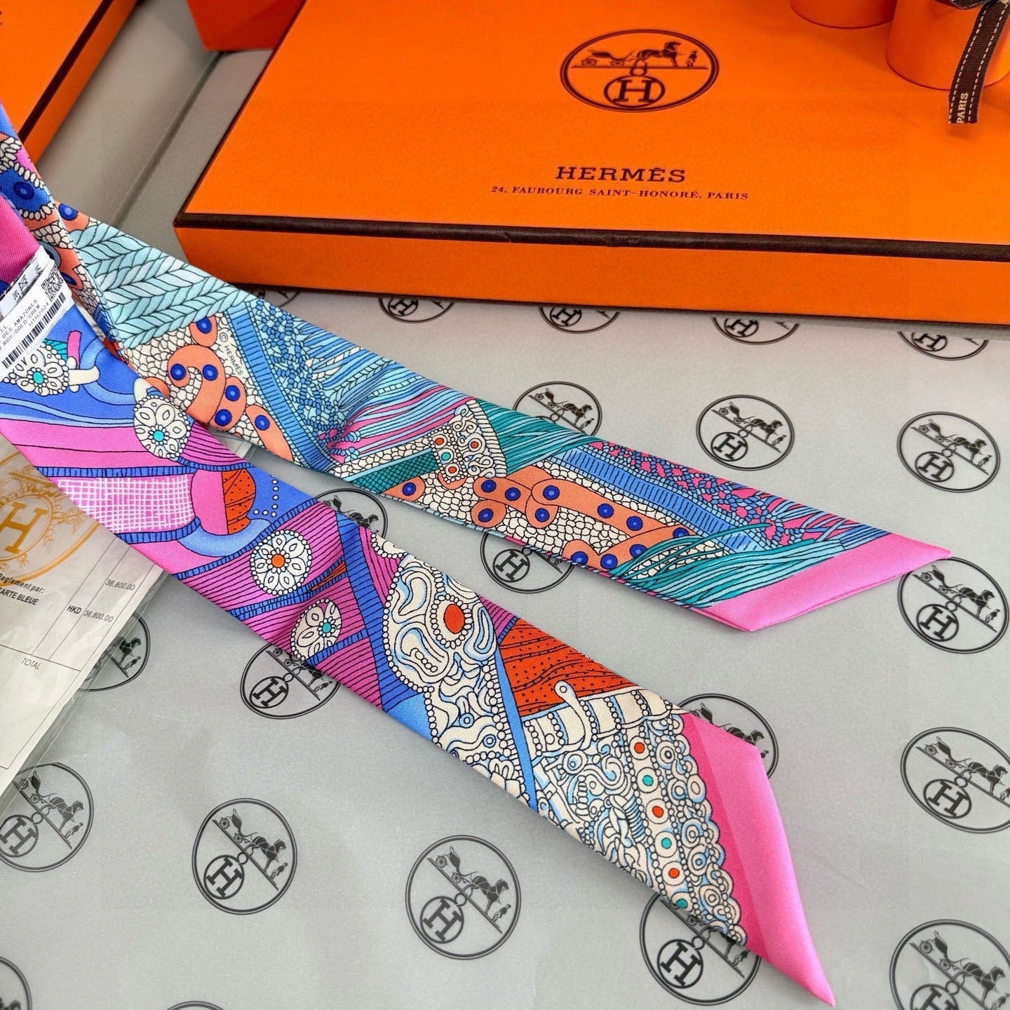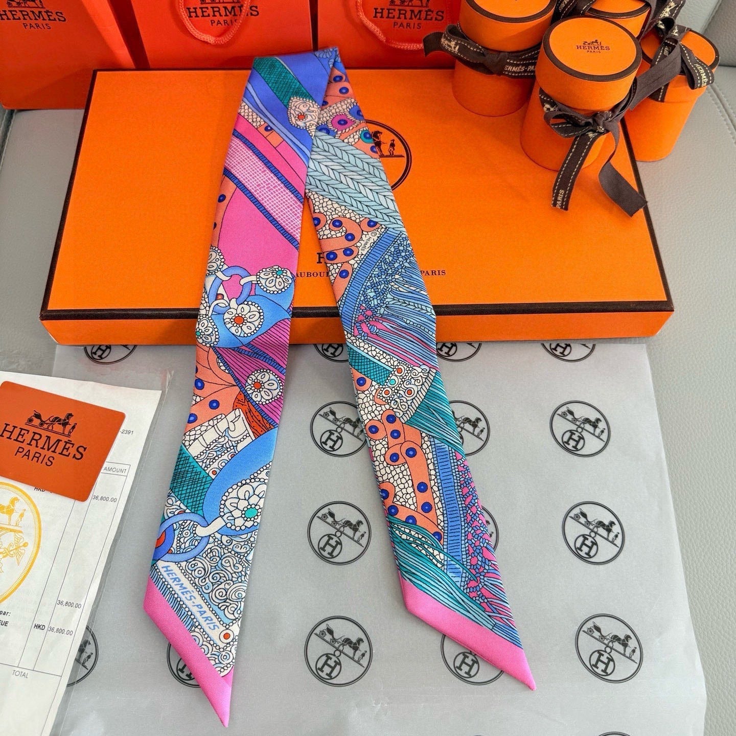 HM Twilly Mini Scarf 86CM Pink Blue Mulberry Silk 965638