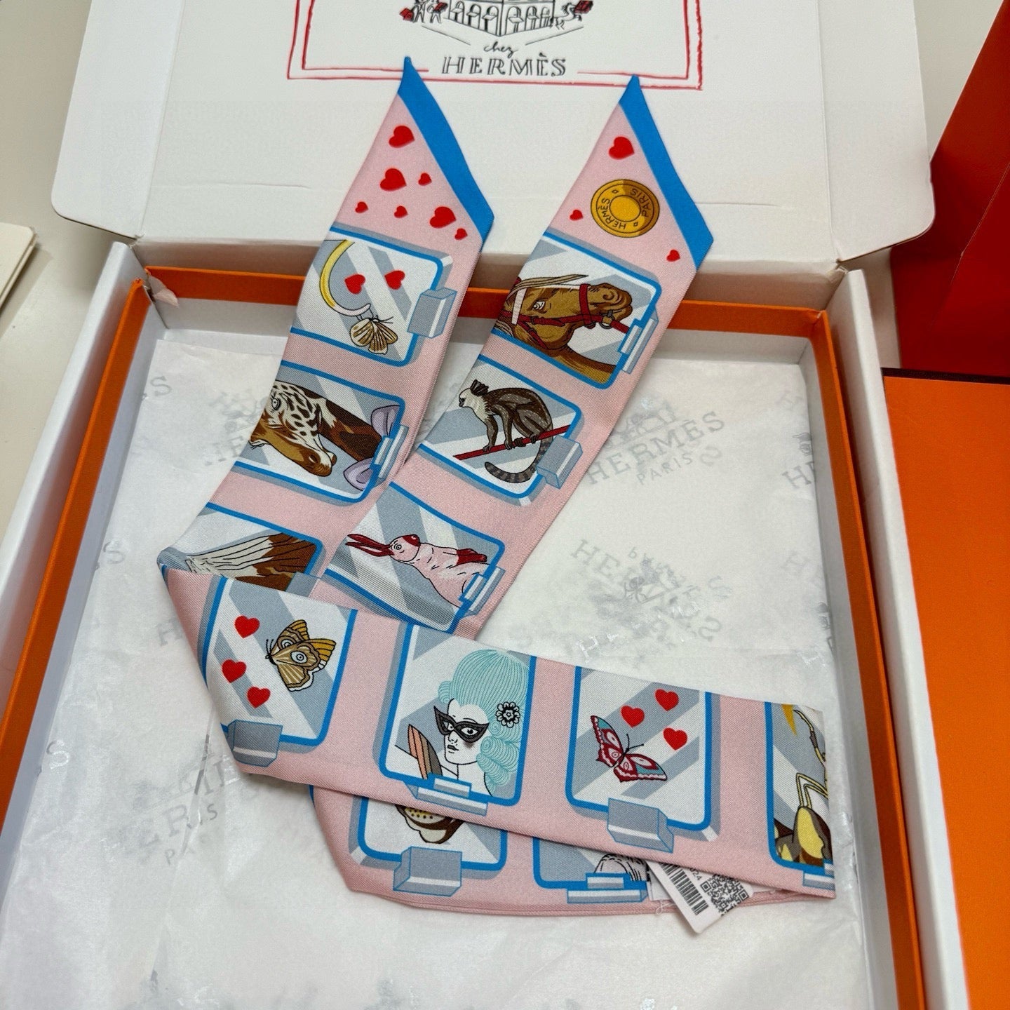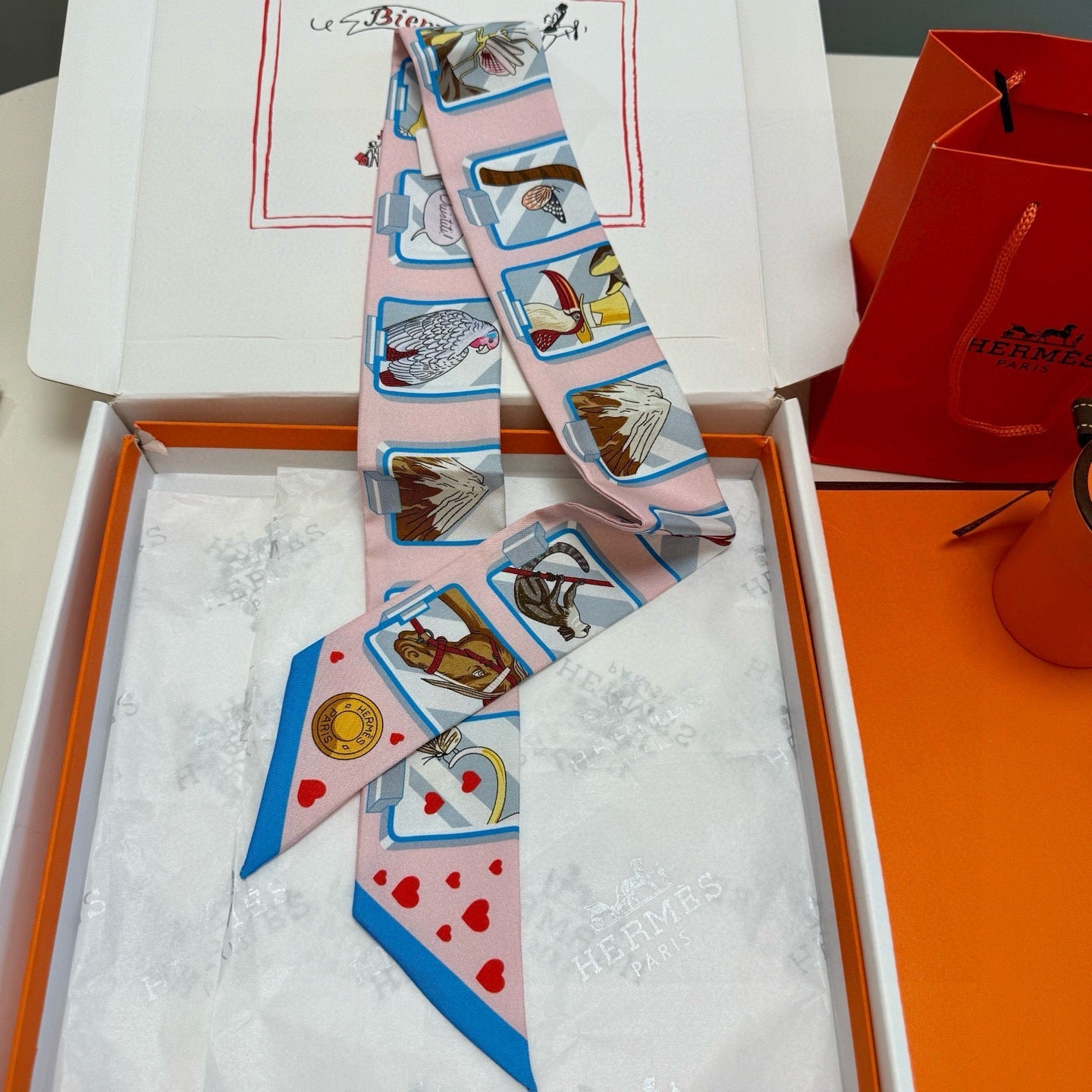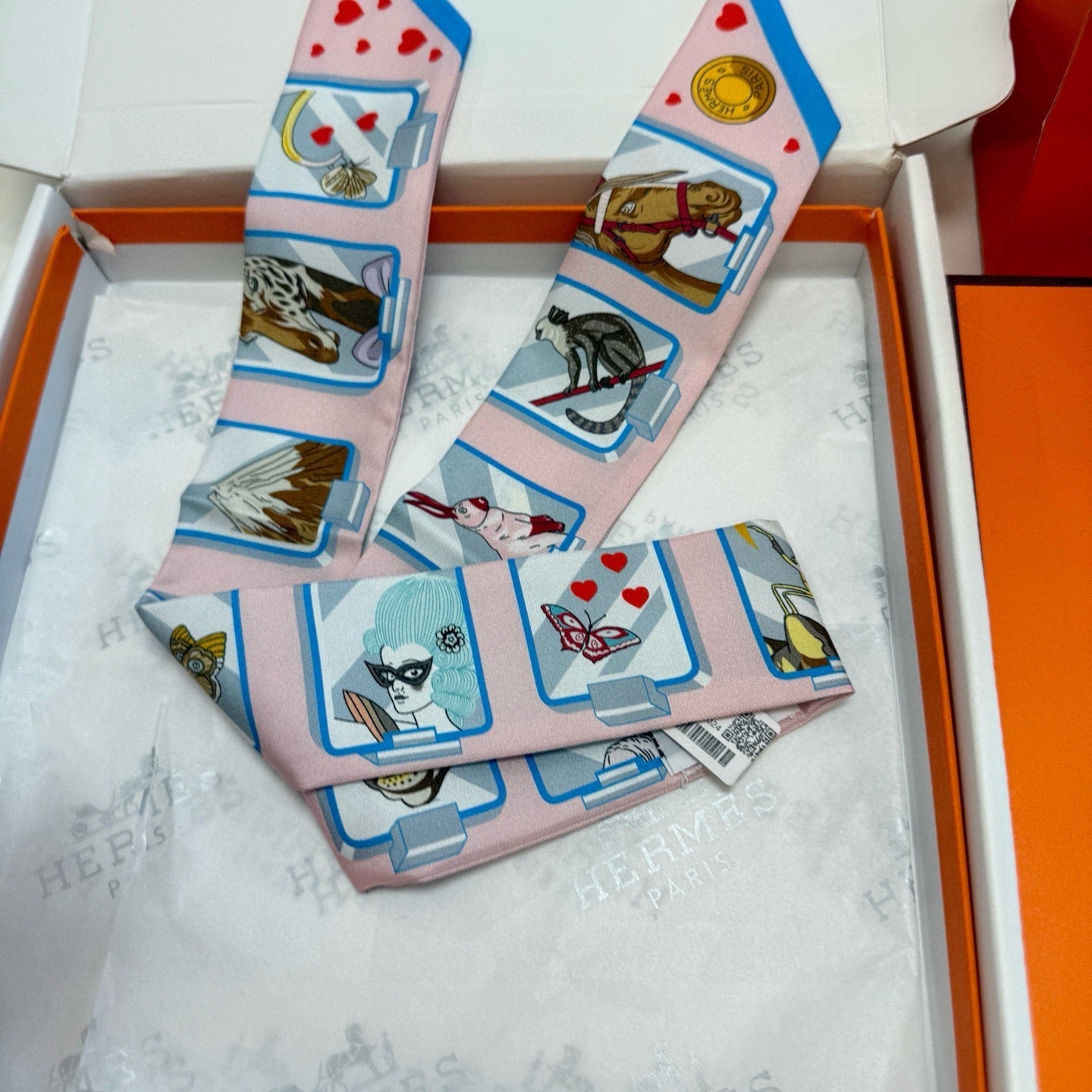 HM Twilly Mini Scarf 86CM Pink Colorful Mulberry Silk 957155