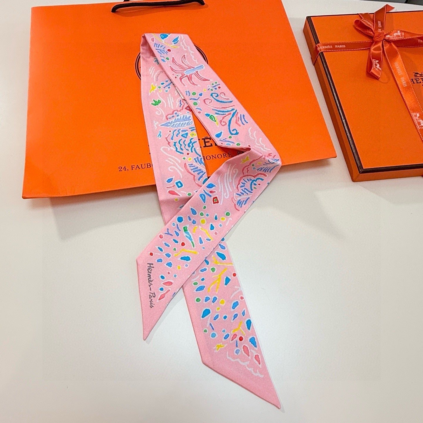HM Twilly Mini Scarf 86CM Pink Mulberry Silk 967442
