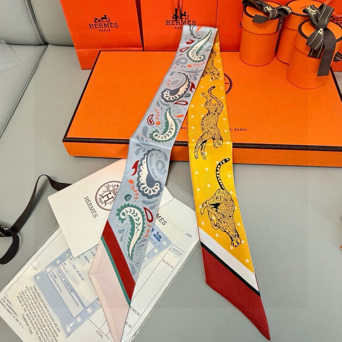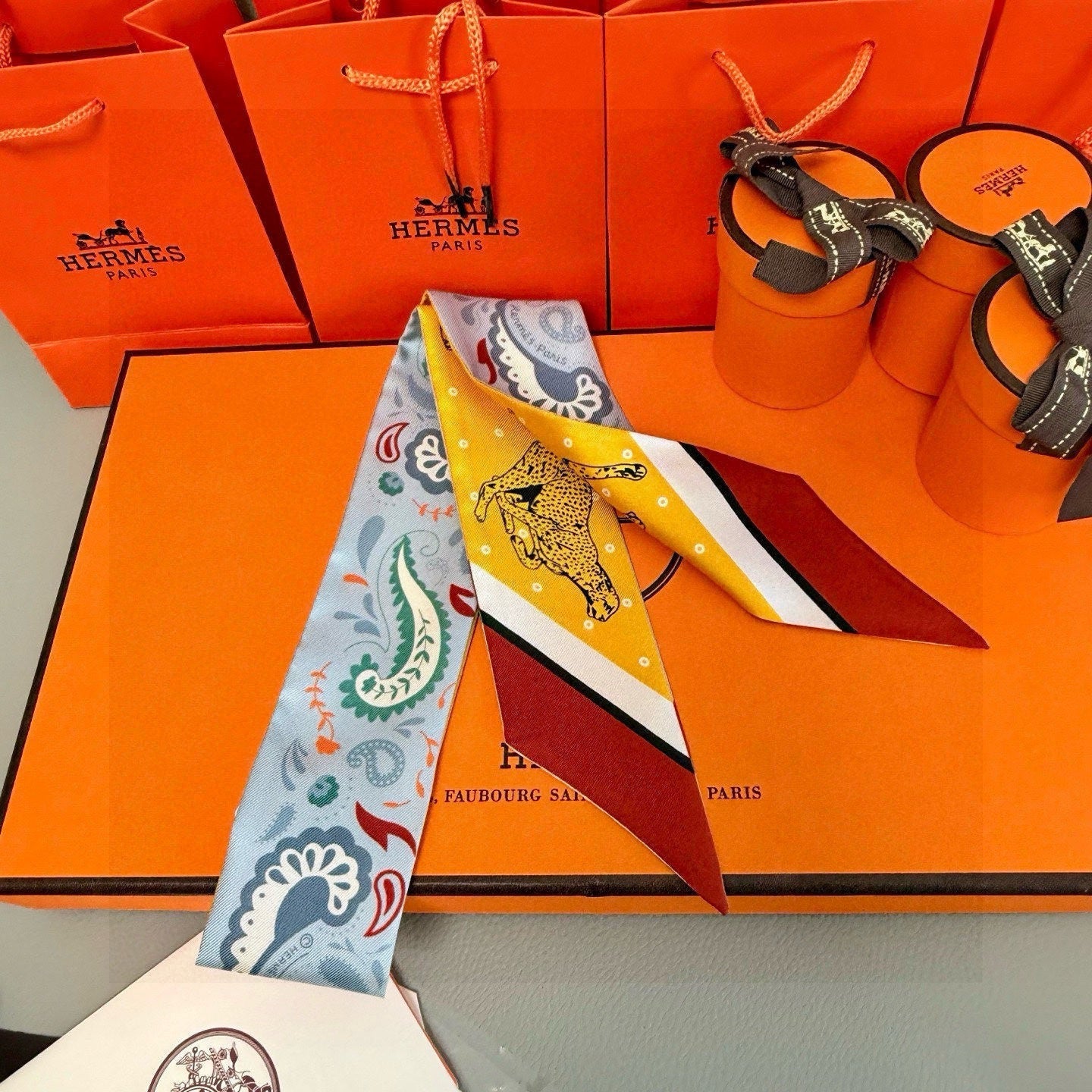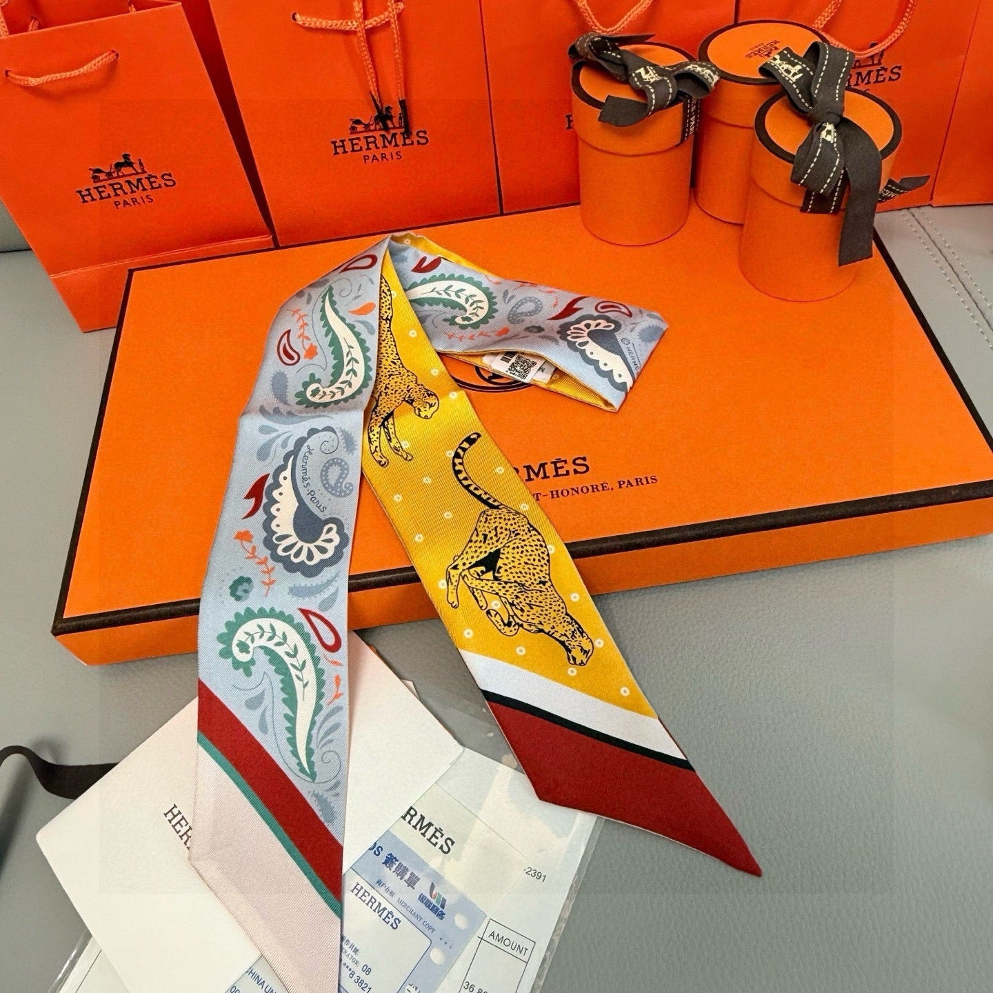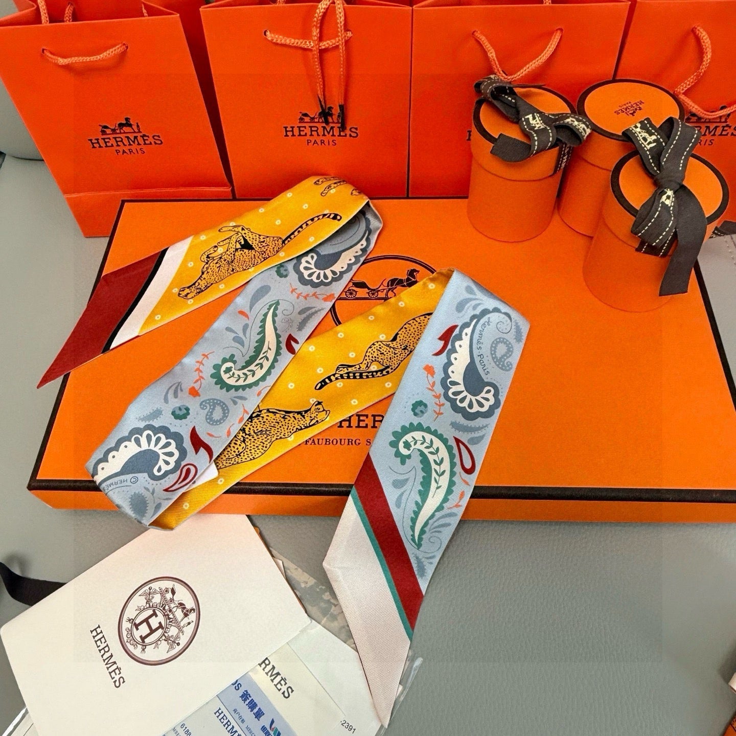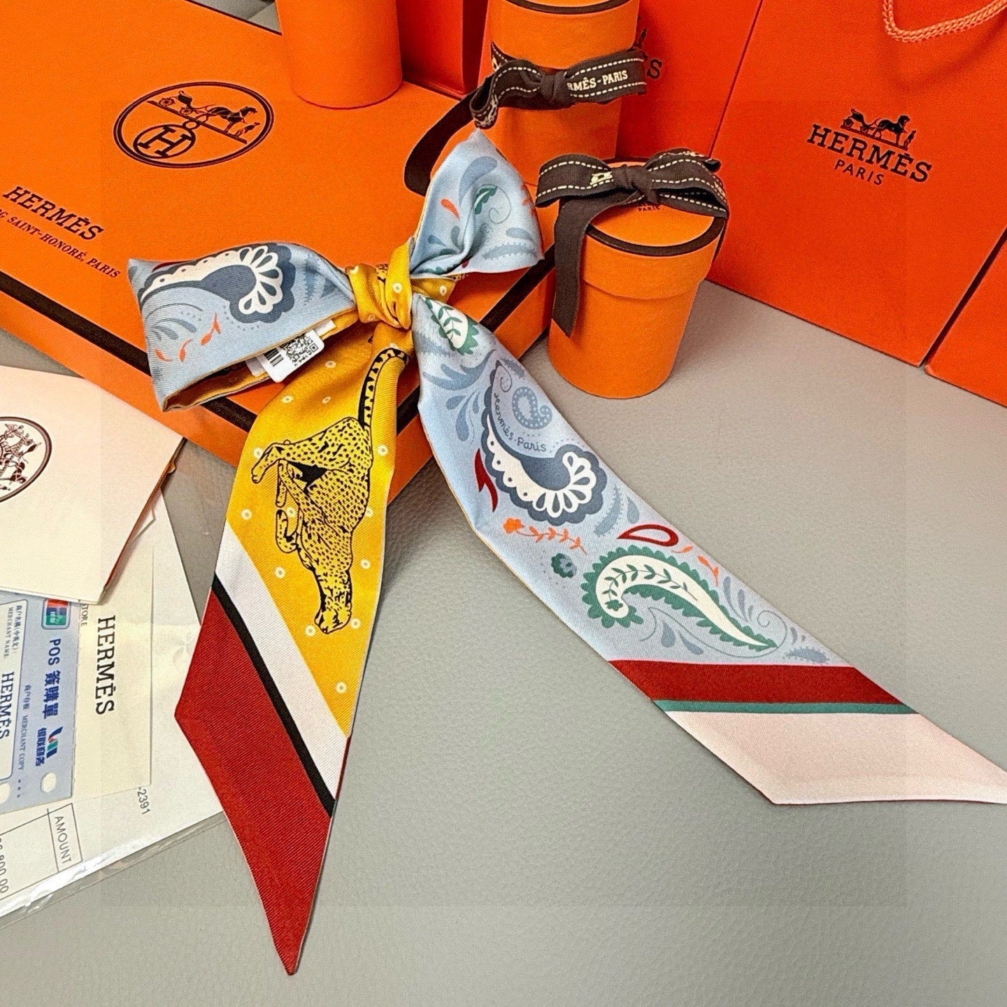 HM Twilly Mini Scarf 86CM Yellow Blue Mulberry Silk 965630