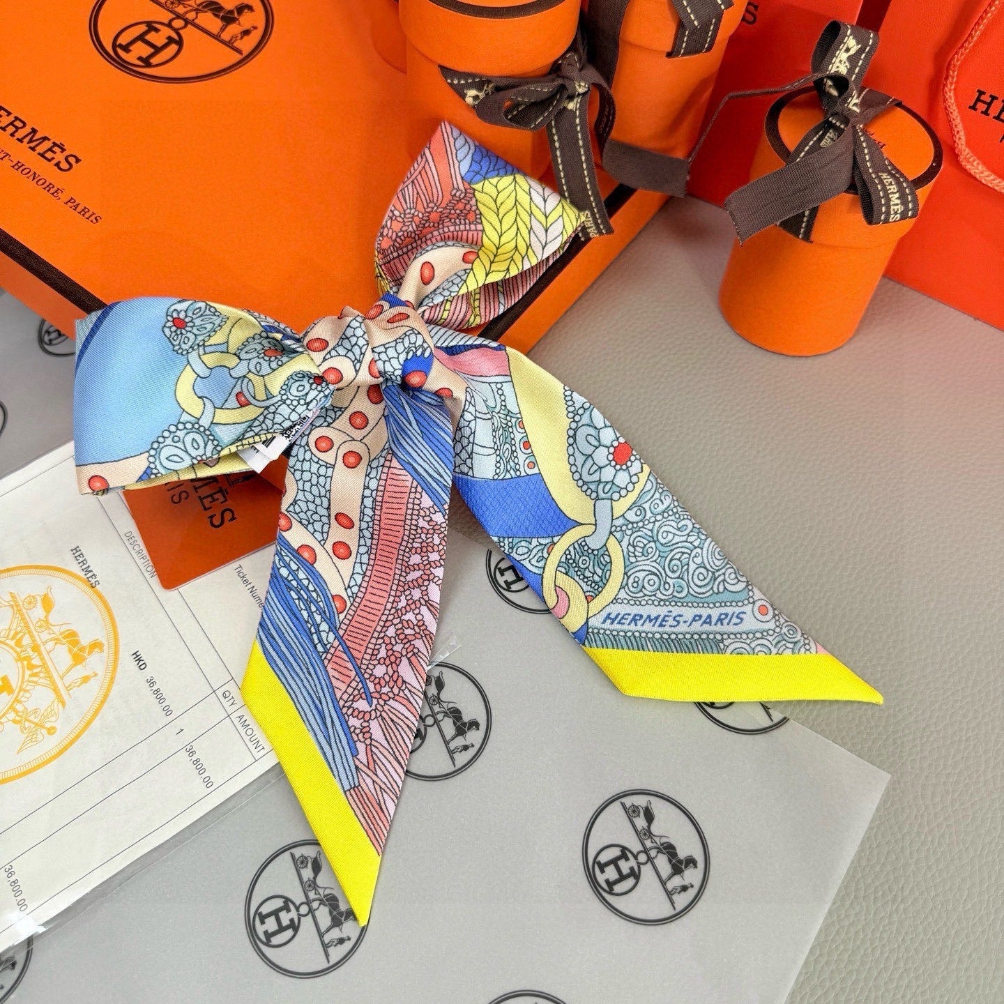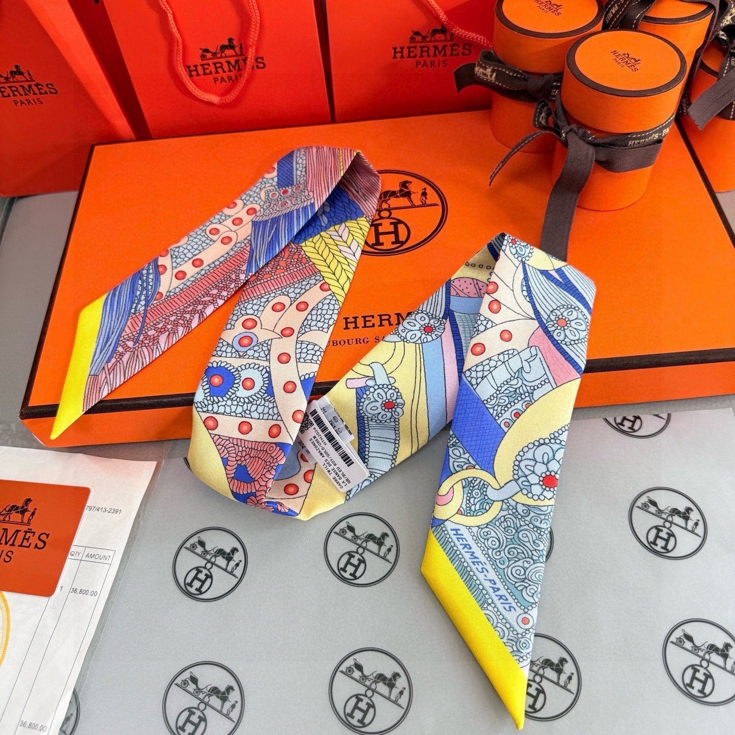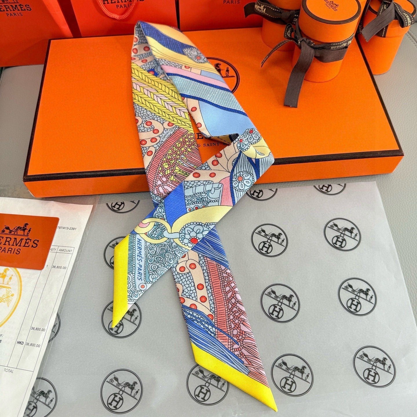 HM Twilly Mini Scarf 86CM Yellow Blue Mulberry Silk 965637