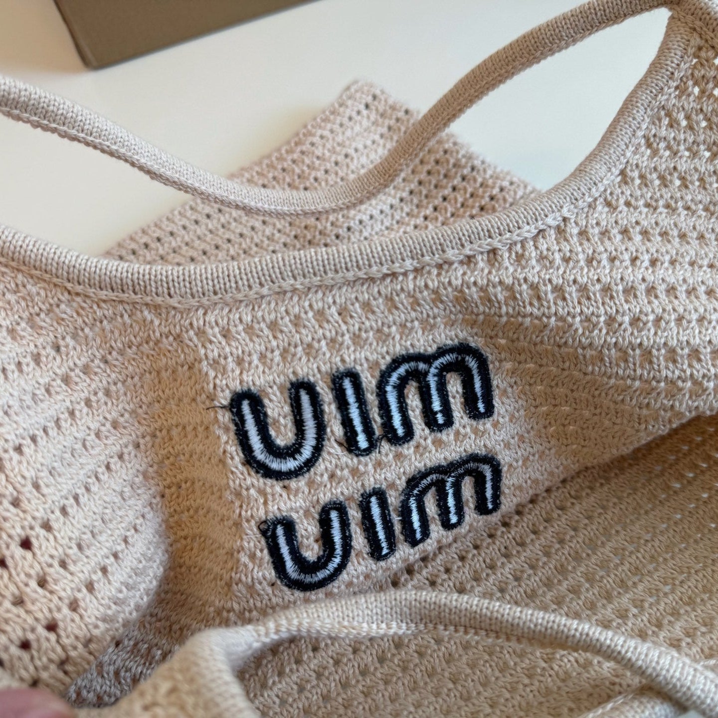HOLLOW KNITTED TOTE BAG 35 IN OFF WHITE MIX BLACK WOVEN FABRIC