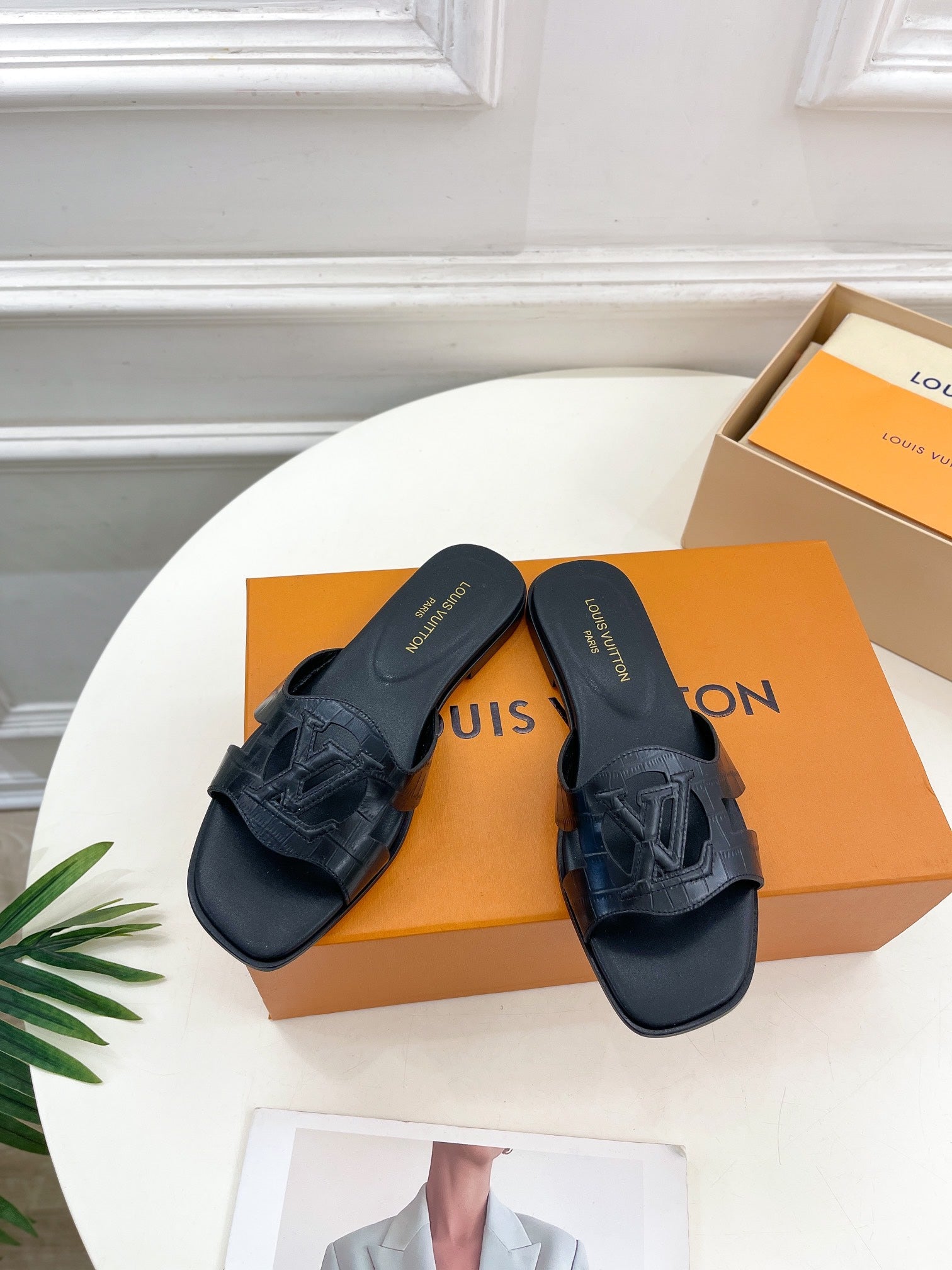 isola flat mule black calfskin