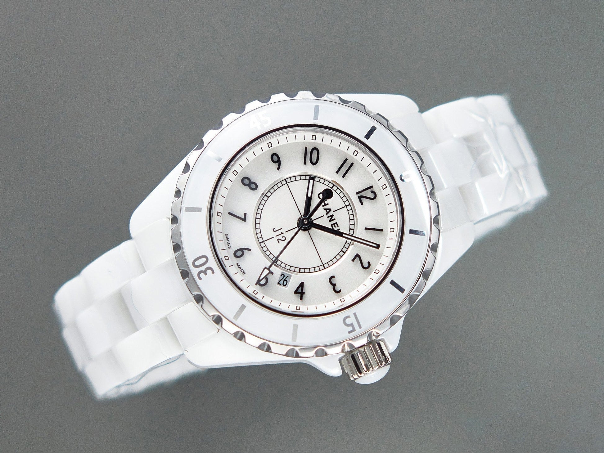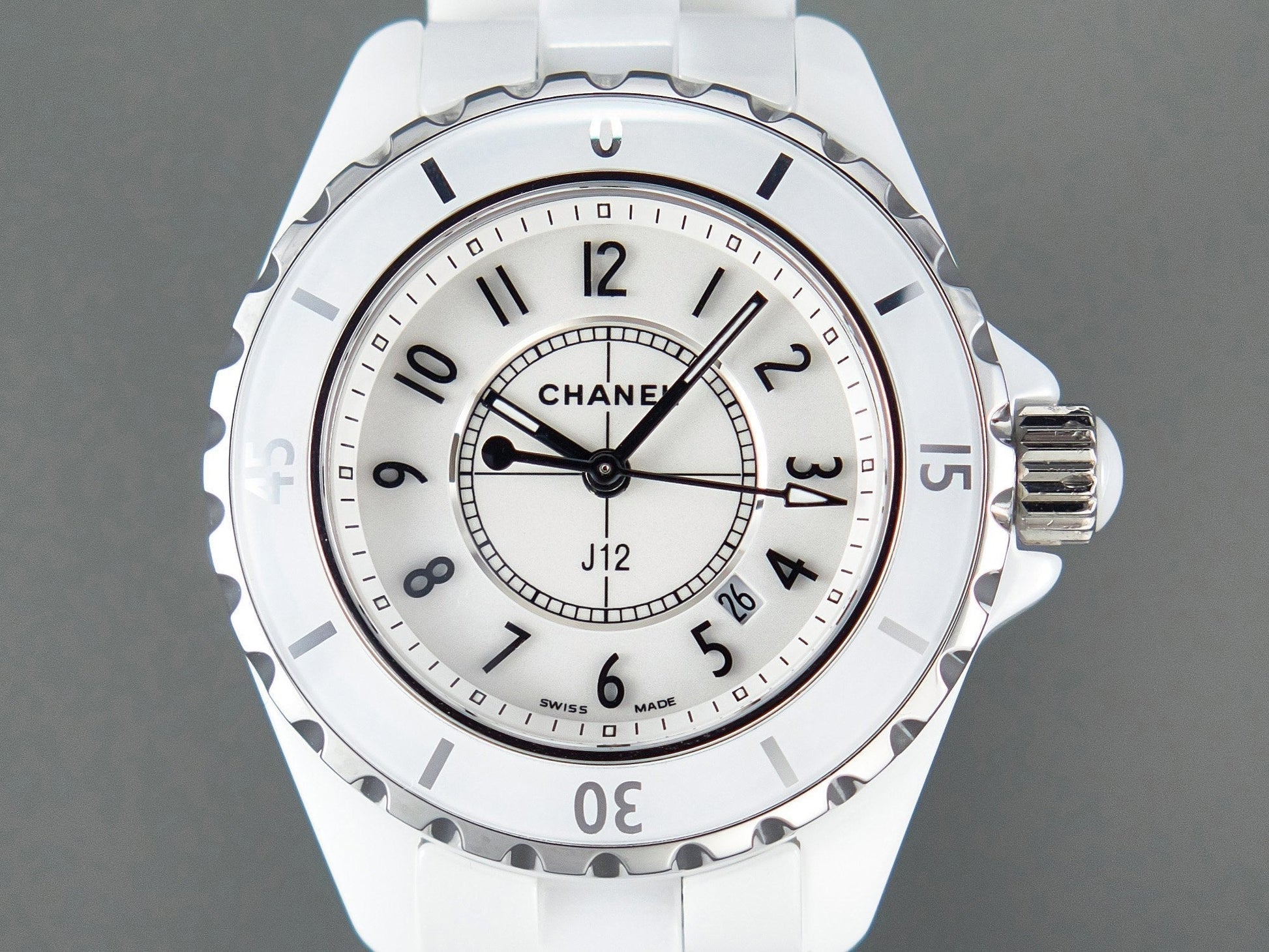 J12 Date Quartz White Ceramic Black Numerals White Dial